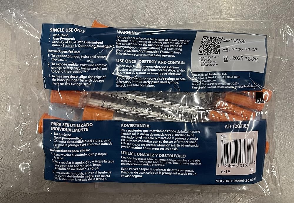 - 30 جم - 5/16 بوصة (يأتي في 3 سم مكعب/مل - .5 سم مكعب/مل - 1 سم مكعب/مل)