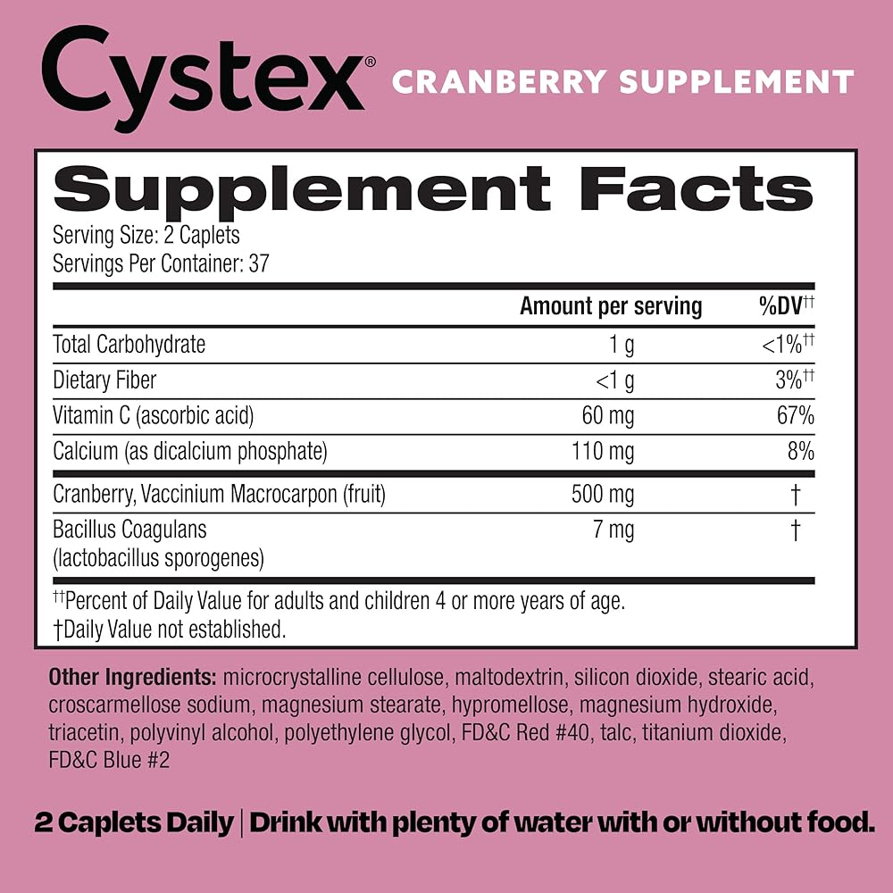- أكثر من التوت البري: تحتوي مكملات التوت البري Cystex على فيتامين C والبروبيوتيك للمساعدة في التنظيف والحماية من عدوى المسالك البولية.