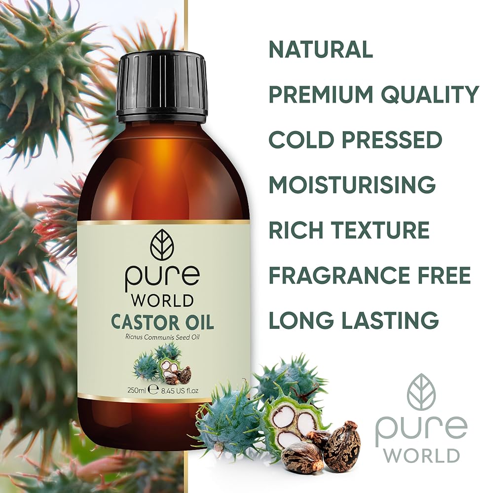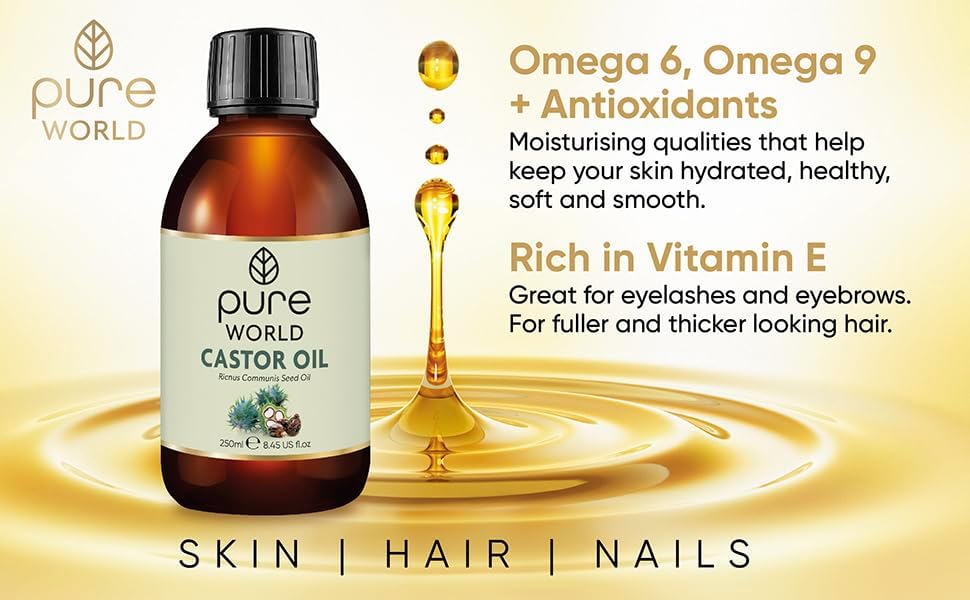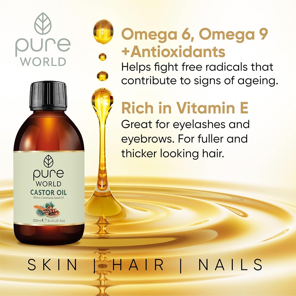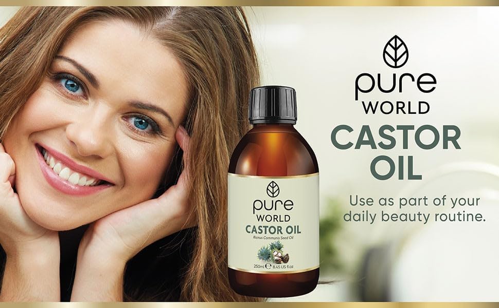 زيت الخروع الطبيعي من بيور وورلد 250 مل 8.45 أونصة سائلة أمريكية.. معصور على البارد والطازج 100% نقي وغير مخفف وخالي من الهكسان الطبيعي للحواجب والأظافر واللحية والشعر ونمو الرموش ولم يتم الإساءة إلى الحيوانات لتصنيعه.
