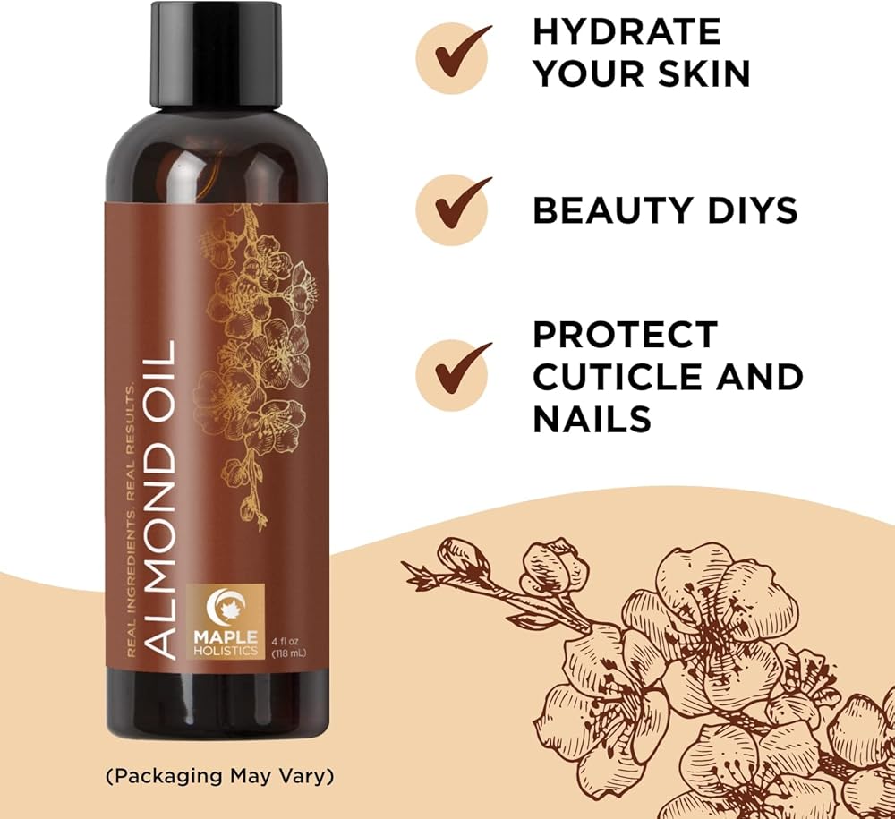 زيت الوجه للبشرة الجافة - استمتعي بزيت اللوز للعناية بالوجه واحتضني مرطبًا طبيعيًا للبشرة مما يمكن أن يساعد في تحسين علامات الشيخوخة بفضل خصائص الاحتفاظ بالرطوبة الرائعة للشفاه أيضًا.