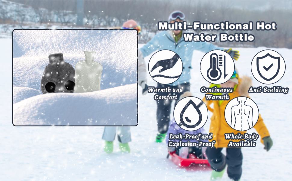 【مادة عالية الجودة】زجاجة الماء الساخن مصنوعة من مادة مطاطية عالية الجودة، وخالية من البيسفينول A، وغير ضارة وآمنة. قد تكون هناك بعض الرائحة عند استخدامه لأول مرة. ضع الوذمة فيه لبضع ساعات لإزالة الرائحة. كيس زجاجة الماء الساخن له تأثير الحفاظ على الحرارة لمدة 4-8 ساعات. تعتمد المدة الزمنية للتدفئة على اختلاف درجة الحرارة في الداخل.