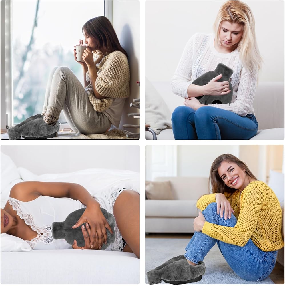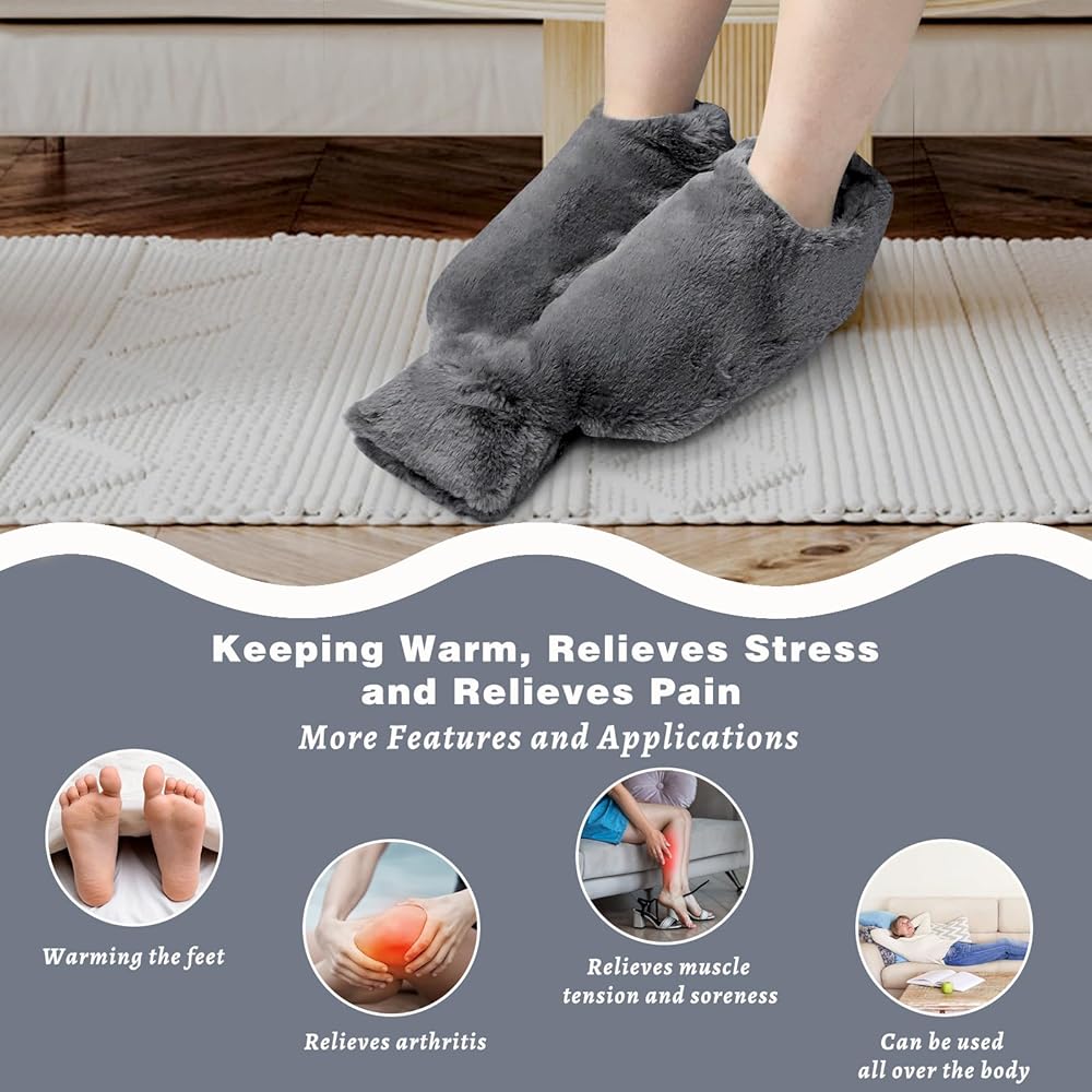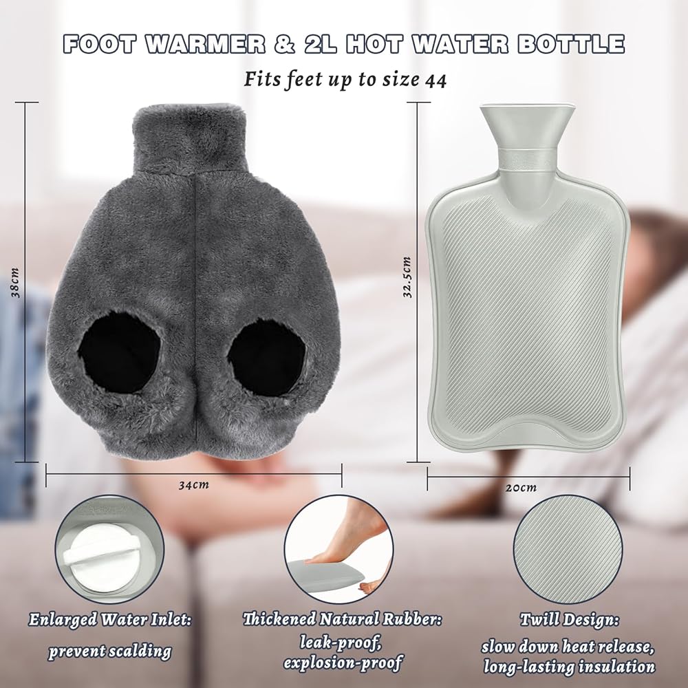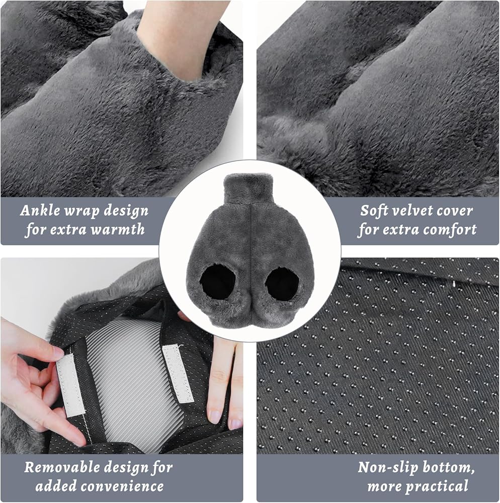 【زجاجة ماء ساخن لتدفئة القدمين】مصممة خصيصًا للأشخاص الذين يعانون من برودة القدمين في الشتاء. الحجم الكبير والواسع للغاية مناسب لأحجام أقدام معظم الأشخاص، ويمكن أن يصل إلى مقاس 11. التصميم المرتفع يدفئ منطقة الكاحل ويجعل القدمين أكثر دفئًا. الغطاء فروي ناعم ومريح عند اللمس. بالإضافة إلى منع الحروق الناجمة عن الاتصال المباشر بزجاجة الماء الساخن، يمكن أن يمنحك أيضًا أفضل تجربة راحة.