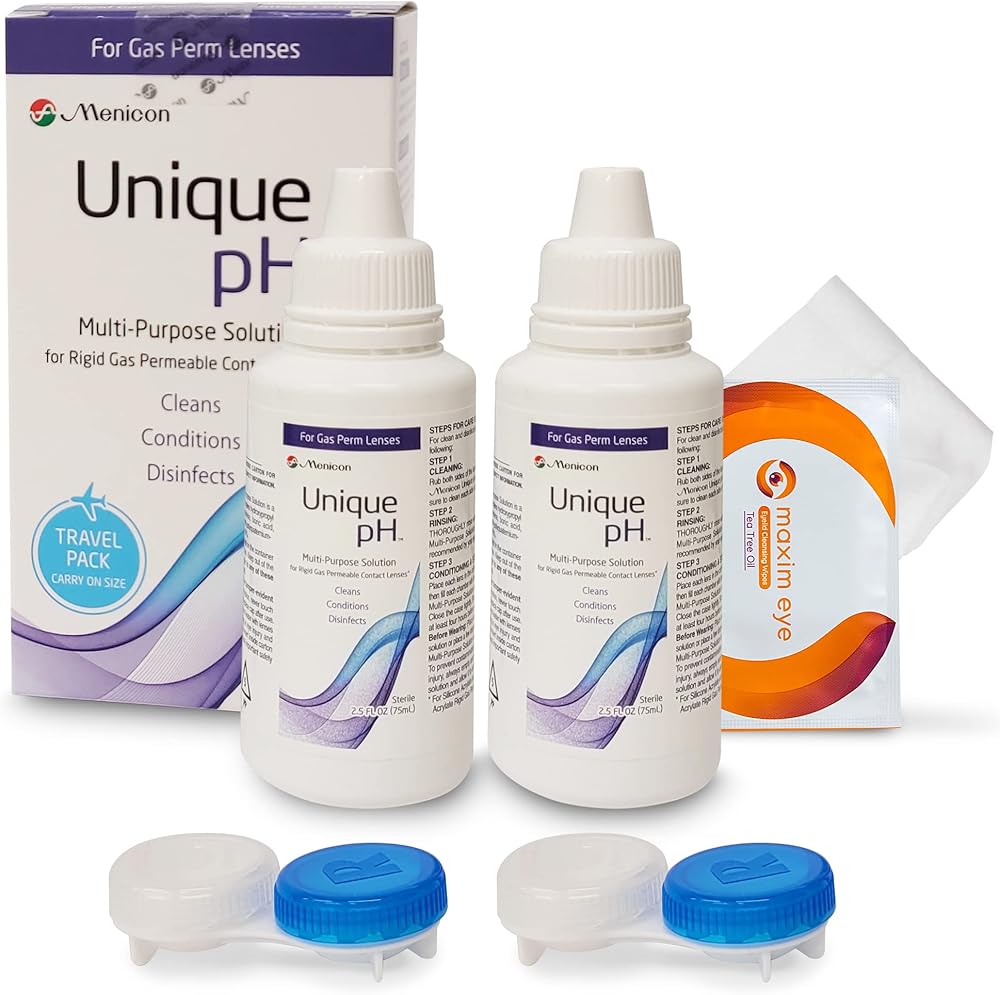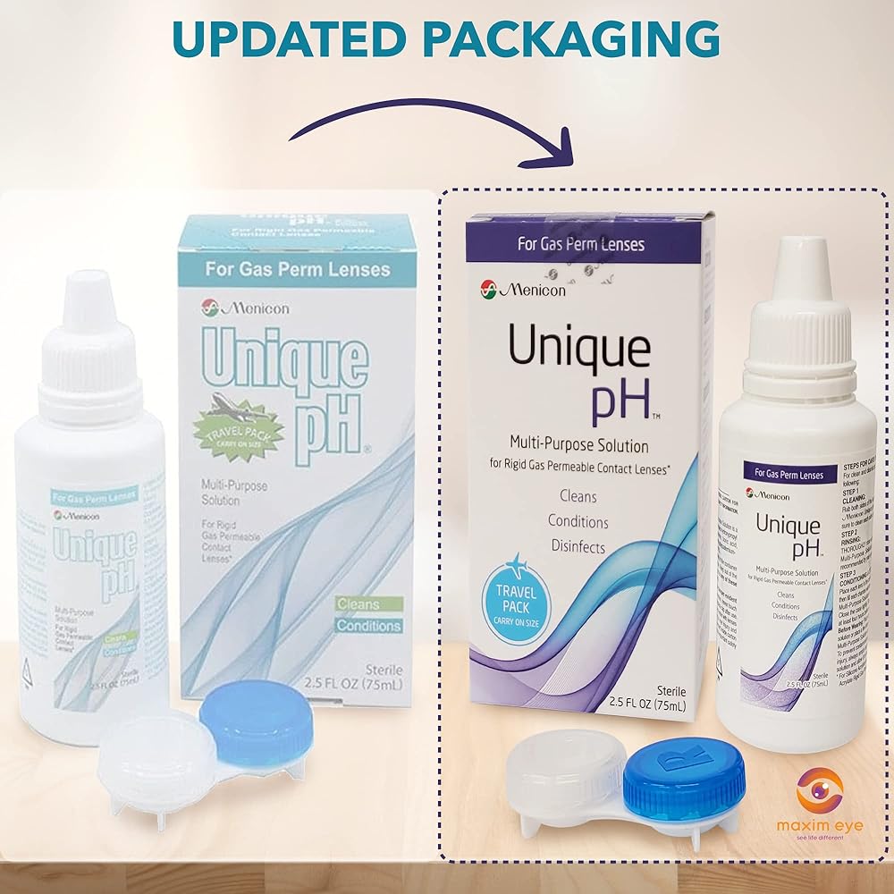 • MENICON UNIQUE PH 2.5 Oz حجم السفر - Menicon فريد من نوعه PH حجم الزجاجة مناسب للسفر لسهولة الحمل. تم تصميم حجم السفر الفريد من نوعه ليتوافق مع إرشادات إدارة أمن المواصلات الأمريكية لحمل السوائل على متن الطائرة. تتضمن حزمة السفر علبة عدسة.