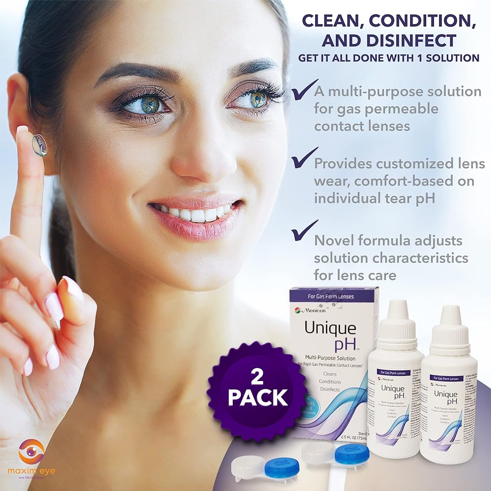 • محلول اتصال 3 في 1 - Menicon Unique ph هو حل متعدد الأغراض فعال للغاية ويحظى باحترام كبير للعدسات اللاصقة RGP. لا يلزم وجود منظف يومي منفصل. ببساطة نقعها ينظف الأوساخ ورواسب البروتين والحطام من عدساتك اللاصقة