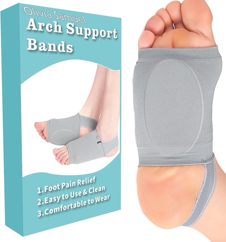 أوليفيا صامويل أكمام دعم قوس القدم، وسادة جل من الداخل للنساء والرجال، شريط دعم أخمصي قابل للتعديل، أغطية دعم قوس قابلة للتنفس للأقدام المسطحة العالية والقوس الساقط (قطعتان)