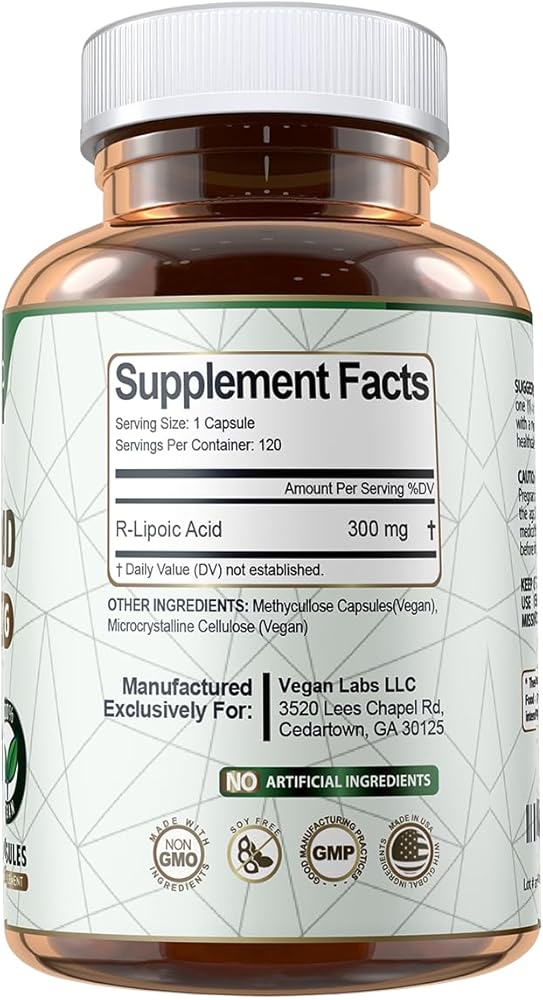 حمض آر-ليبويك 300 ملجم من فيجان لابس، 120 كبسولة نباتية - يدعم استقلاب الجلوكوز والطاقة الخلوية وحماية مضادات الأكسدة - خالي من الغلوتين، غير معدل وراثيًا، مكمل R-ALA المستقر - كمية تكفي لمدة 4 أشهر