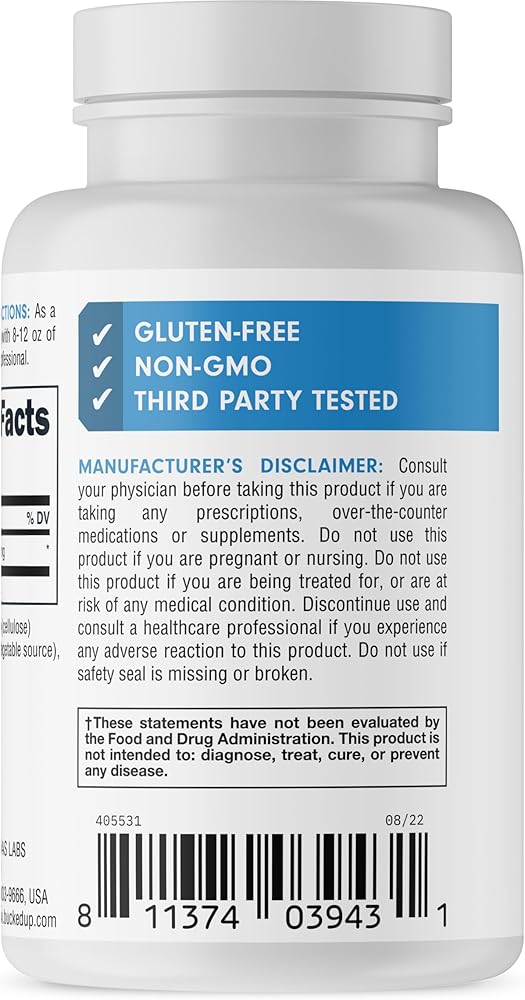جزء من خط المكملات الغذائية الموثوق به Bucked Up Essentials: مصنوع في منشأة مسجلة لدى إدارة الغذاء والدواء الأمريكية ومتوافقة مع ممارسات التصنيع الجيدة (GMP).