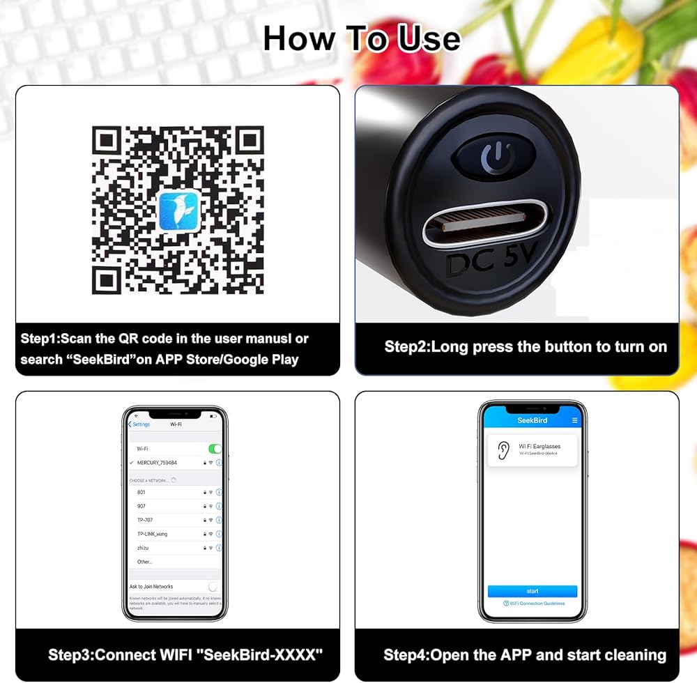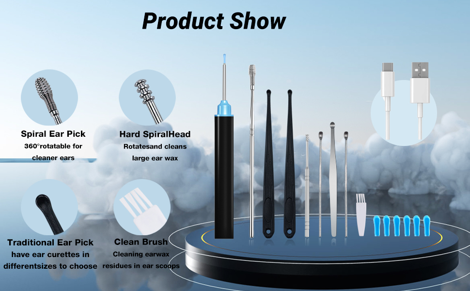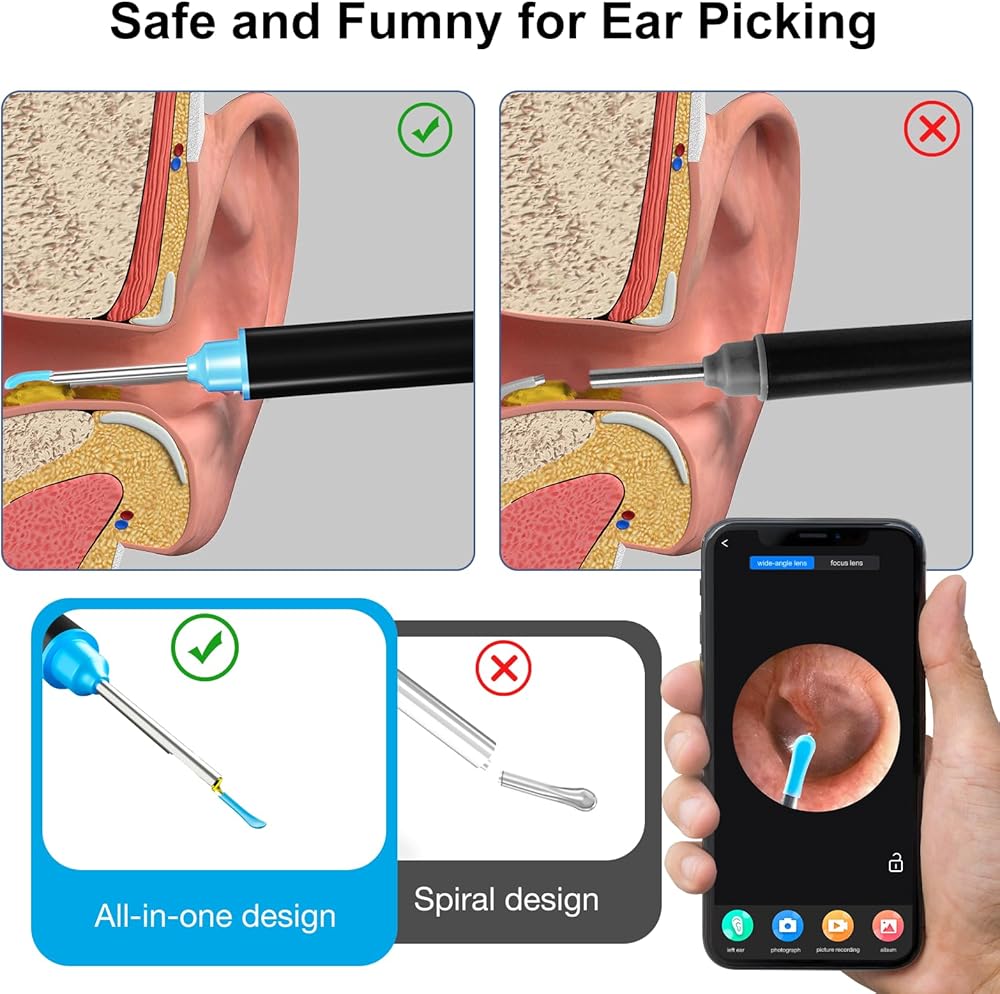 • 【اتصال واي فاي والتحكم في التطبيق】إزالة شمع الأذن لدينا سهلة الاستخدام، قم بمسح رمز الاستجابة السريعة وتنزيل التطبيق، وقم بتوصيل كاميرا شمع الأذن عبر WIFI لبدء الاستخدام. يمكنك رؤية أذنيك بوضوح على هاتفك أو جهازك اللوحي، ويمكنك ذلك كما يدعم التصوير في الوقت الحقيقي وتسجيل الفيديو.