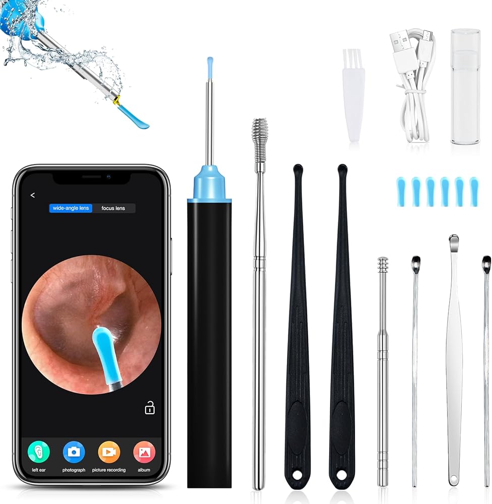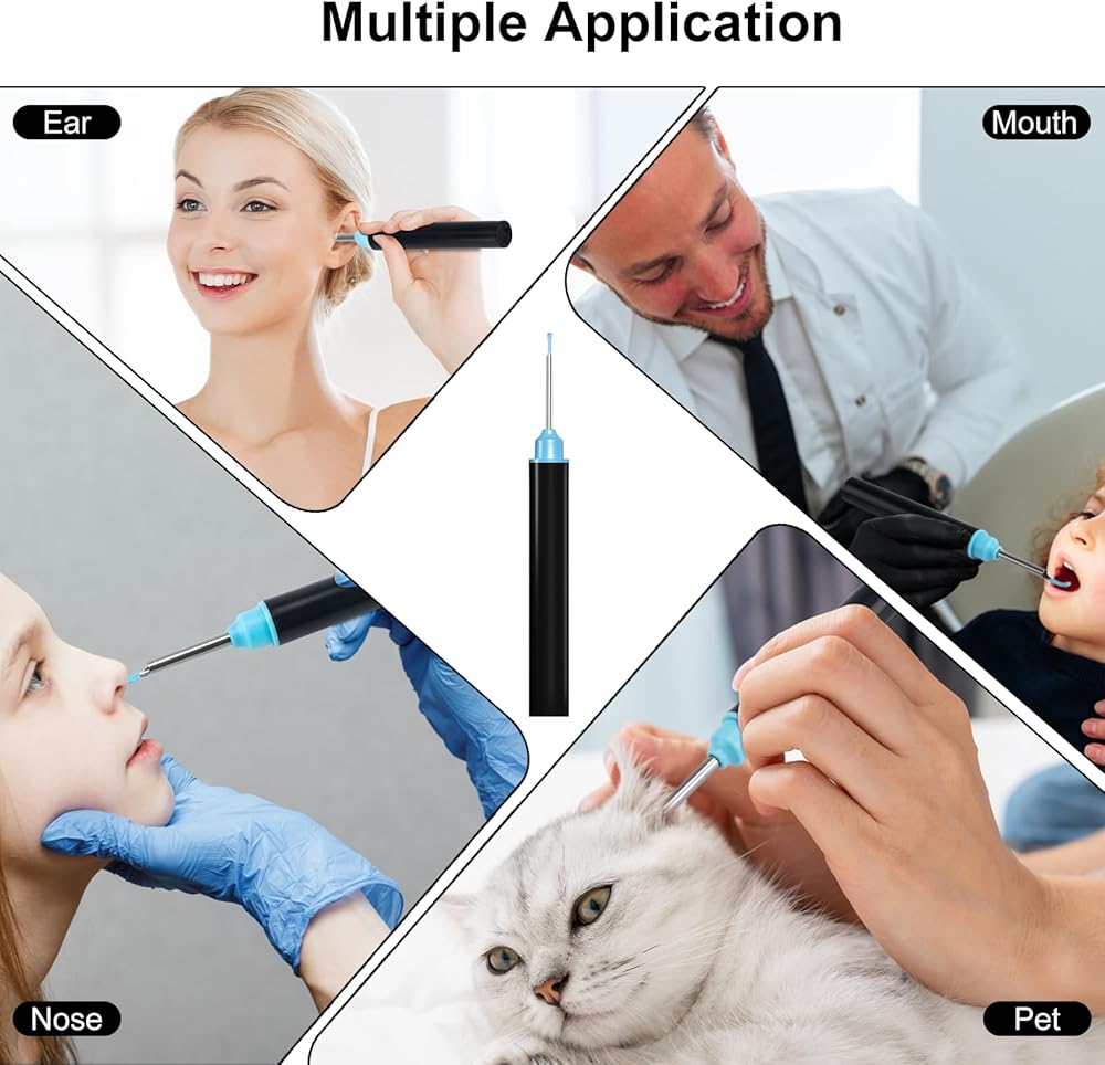كاميرا مجموعة إزالة شمع الأذن من Thlevel، منظف الأذن البصري 1080 بكسل، مجموعة إزالة شمع الأذن المحدثة مع 6 مصابيح و7 قطع مجموعة أذن لأجهزة iPhone، وipad، وAndroid/الكبار، والأطفال، والحيوانات الأليفة.
