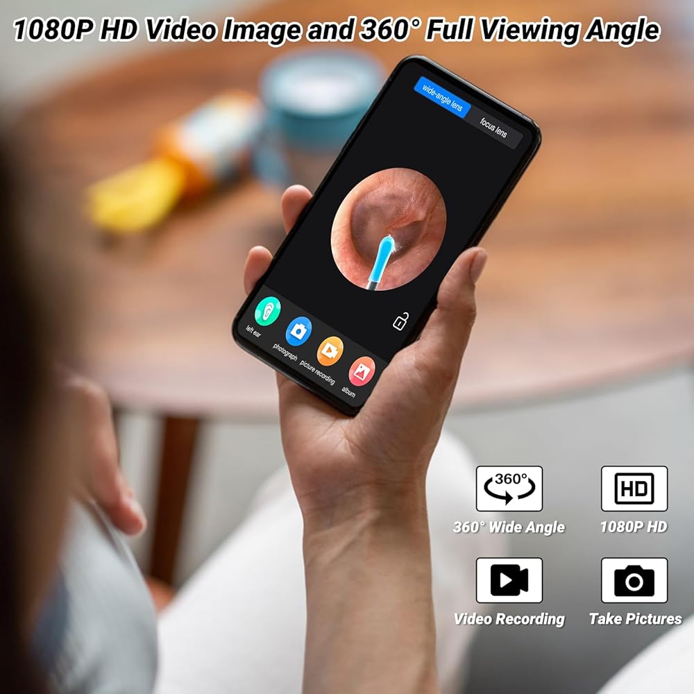 • 【1080P HD 360 درجة عرض مجاني 】 أداة إزالة شمع الأذن من Thlevel دقة 1080P HD وكاميرا ماكرو بزاوية واسعة 360 درجة مع 6 مصابيح LED ساطعة. والتي يمكنها التقاط صور ومقاطع فيديو عالية الدقة في الوقت الفعلي مع مجال رؤية كبير وبدون زاوية ميتة لمساعدتك على عرض شمع الأذن وتنظيفه بشكل فعال. عدسة منظار الأذن مقاومة للماء IP67 ويمكن تنظيفها بالماء أو مسحها بالكحول للتطهير. (ملاحظة: آلة الجسم ليست مقاومة للماء!!!)