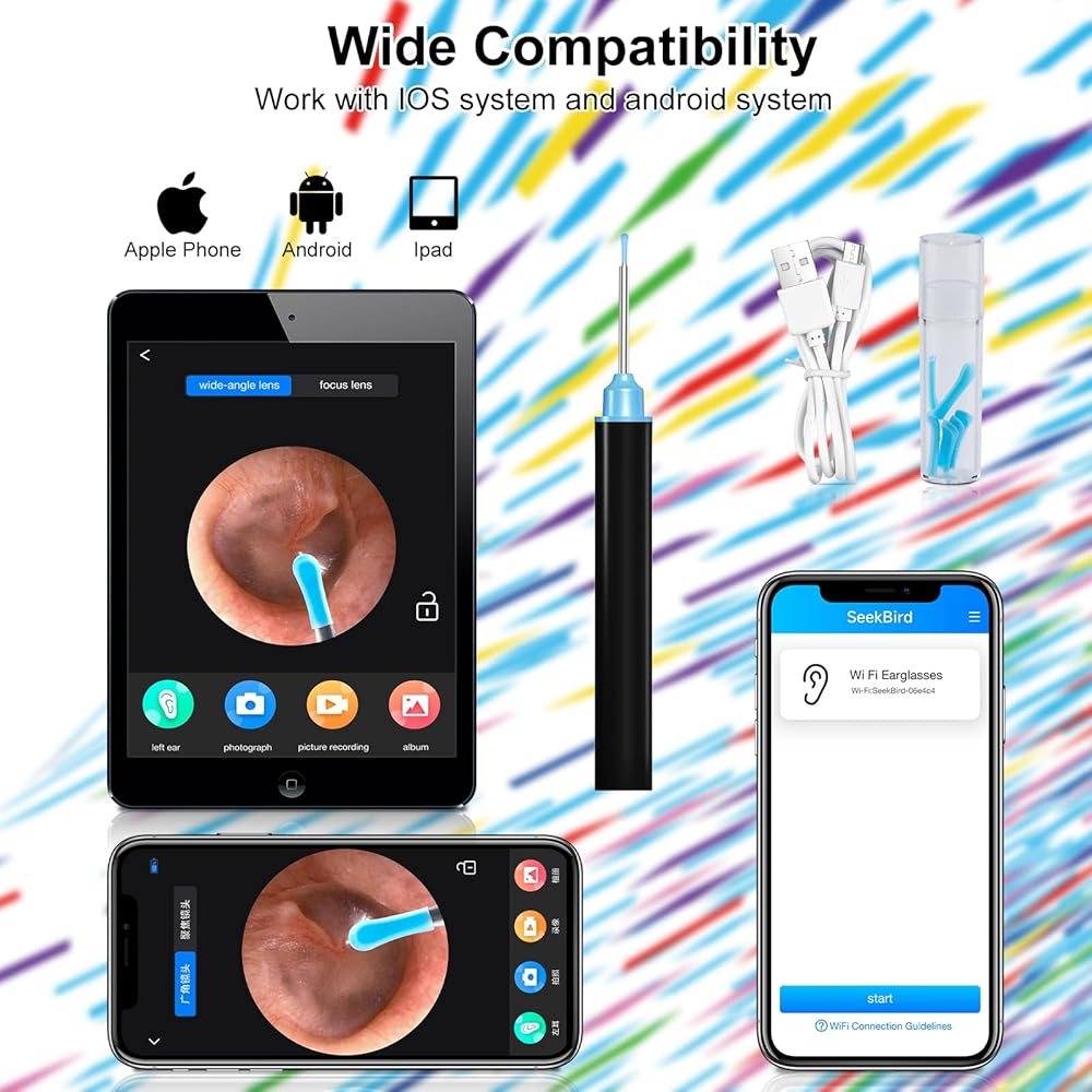 • 【توافق واسع】يمكن تكييف إزالة شمع الأذن مع جميع أجهزة Android وIOS، بالإضافة إلى الأجهزة اللوحية. لا تحتوي شبكة WIFI المدمجة على وظيفة الإنترنت ولن تتمكن من الوصول إلى بياناتك، فلا تتردد في استخدامها.
