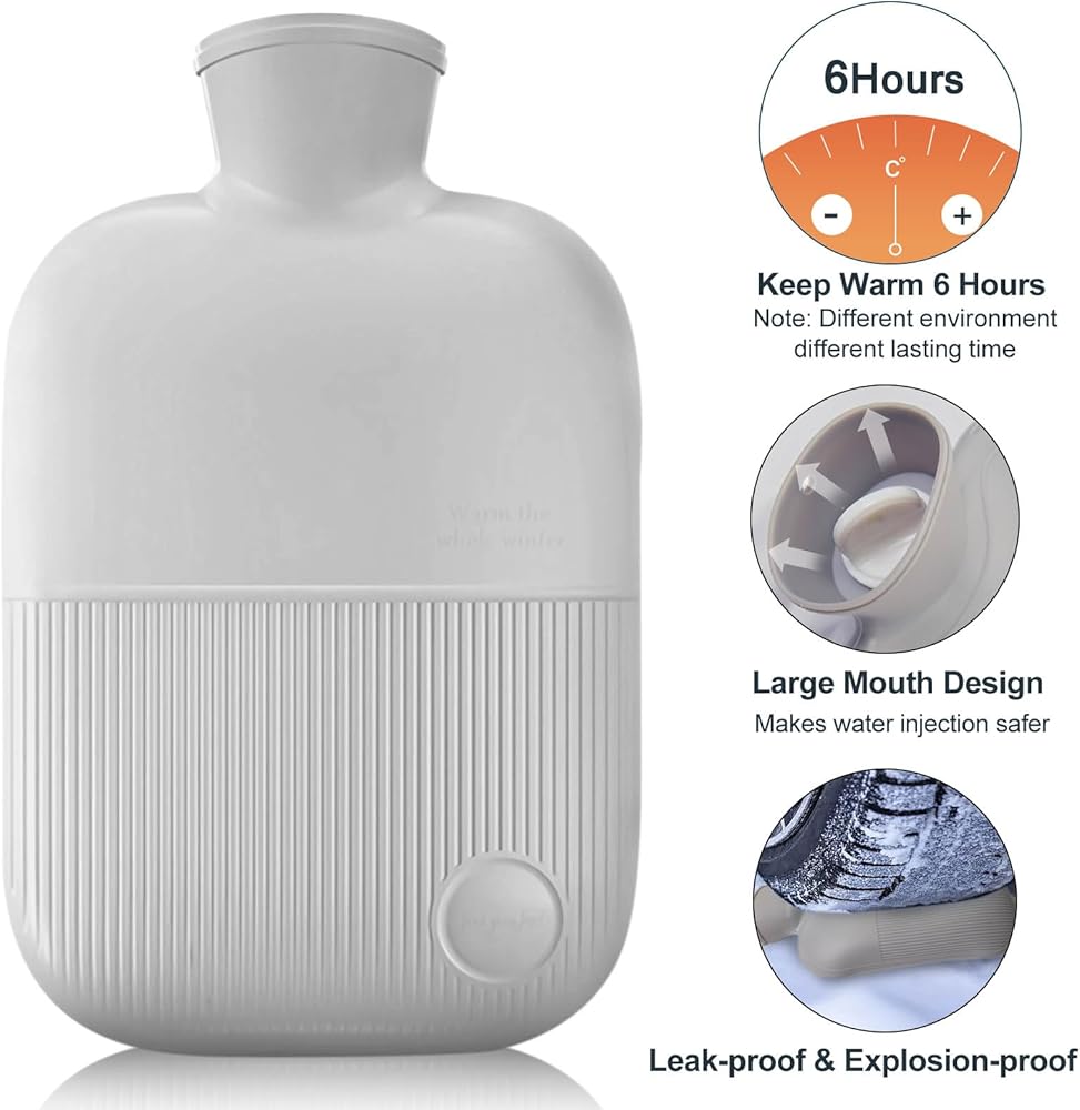 استخدامات واسعة: يمكن لسخان السرير الكلاسيكي لزجاجة الماء الساخن أن يعالج ألم العضلات والإجهاد أو التشنجات والتهاب المفاصل والأوجاع والألم والرقبة الصلبة وآلام أسفل الظهر، وهدايا للنساء لتخفيف تشنجات الدورة الشهرية والأوجاع الشائعة الأخرى عن طريق الضغط الساخن ويمكن أيضًا مضاعفة ككمادات باردة للشخص المصاب بالحمى أو لتقليل التورم في الإصابات الطفيفة.