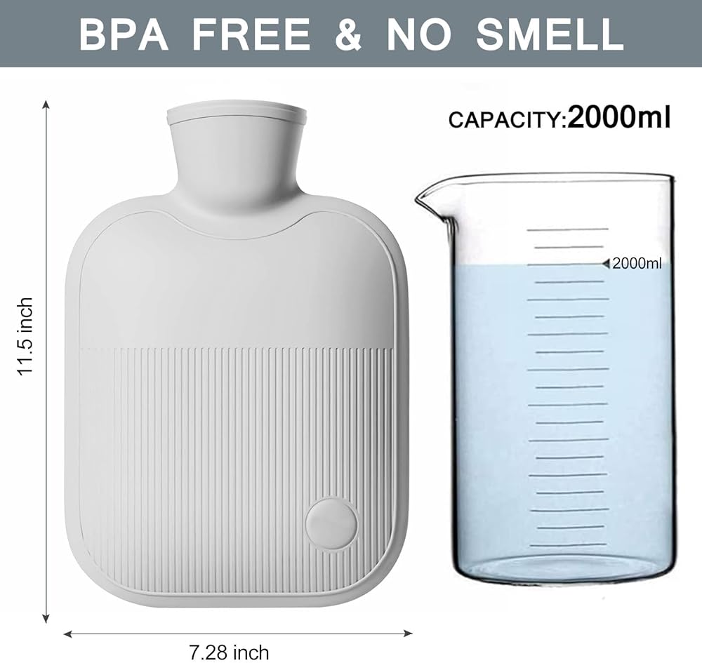 زجاجة ماء ساخن مع غطاء ناعم، زجاجات مياه ساخنة مطاطية سعة 2 لتر لتخفيف الآلام، كيس ماء ساخن قابل لإعادة الاستخدام لتشنجات الدورة الشهرية، جهاز تدفئة القدمين، حزمة باردة ساخنة من البولي فينيل كلوريد للعلاج الساخن والبارد