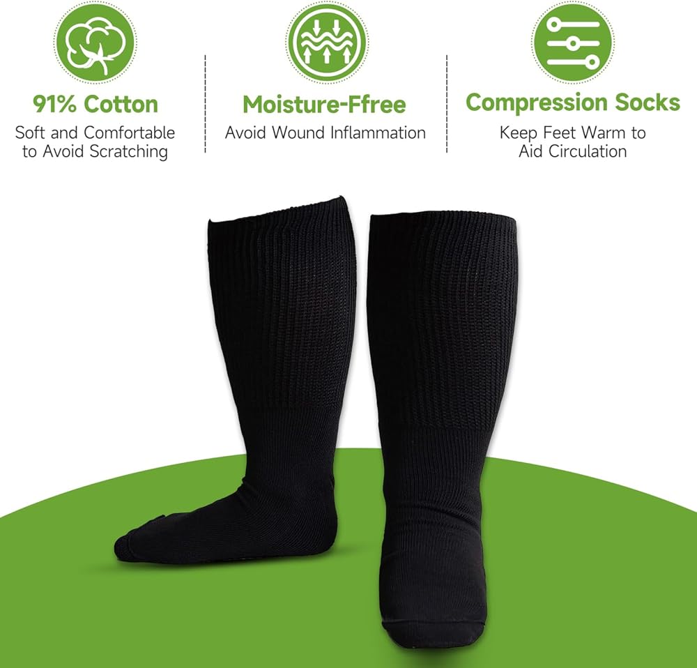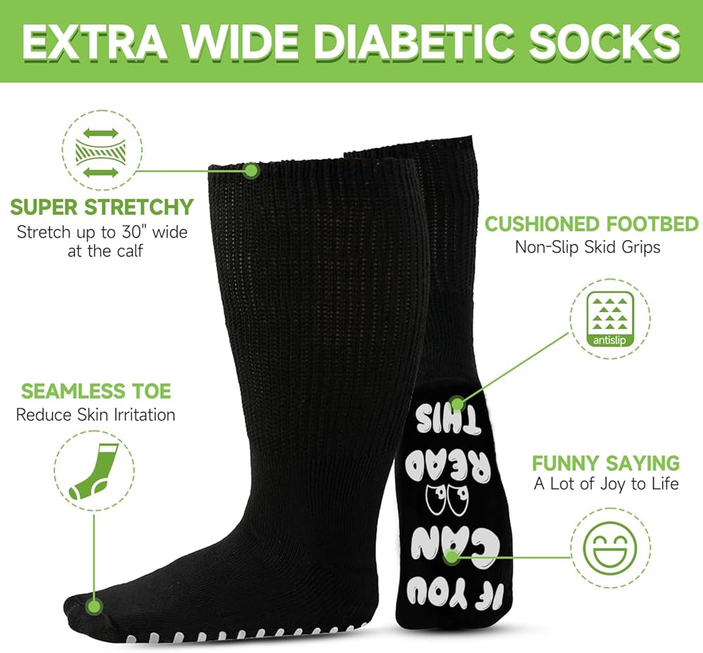 Super Wide Edema Socks: Our extra wide diabetic socks can stretches up to 30" wide, which is easy to wear. They are incredibly stretchy but not loose or sag. These men diabetic socks suit for Lymphedema drainage, Edema, Cast, Bariatric, Swollen feet. 4 pairs in one pack ensures you always have spare socks to use.