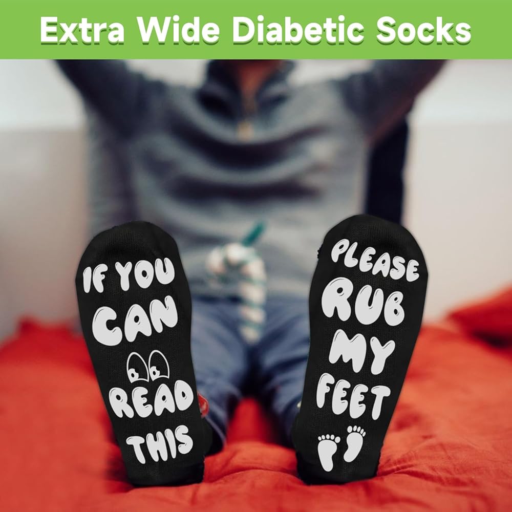 Funny Diabetic Socks That Make You Laugh Out Loud: These hospital socks are designed with funny saying printed on the bottom, distracting patients' body from suffering by spreading happiness. "I'm not sleeping, I'm just resting my eyes."; "If you can read this, please rub my feet."; A lot of laughing and pleasure while wearing these cute neuropathy socks.