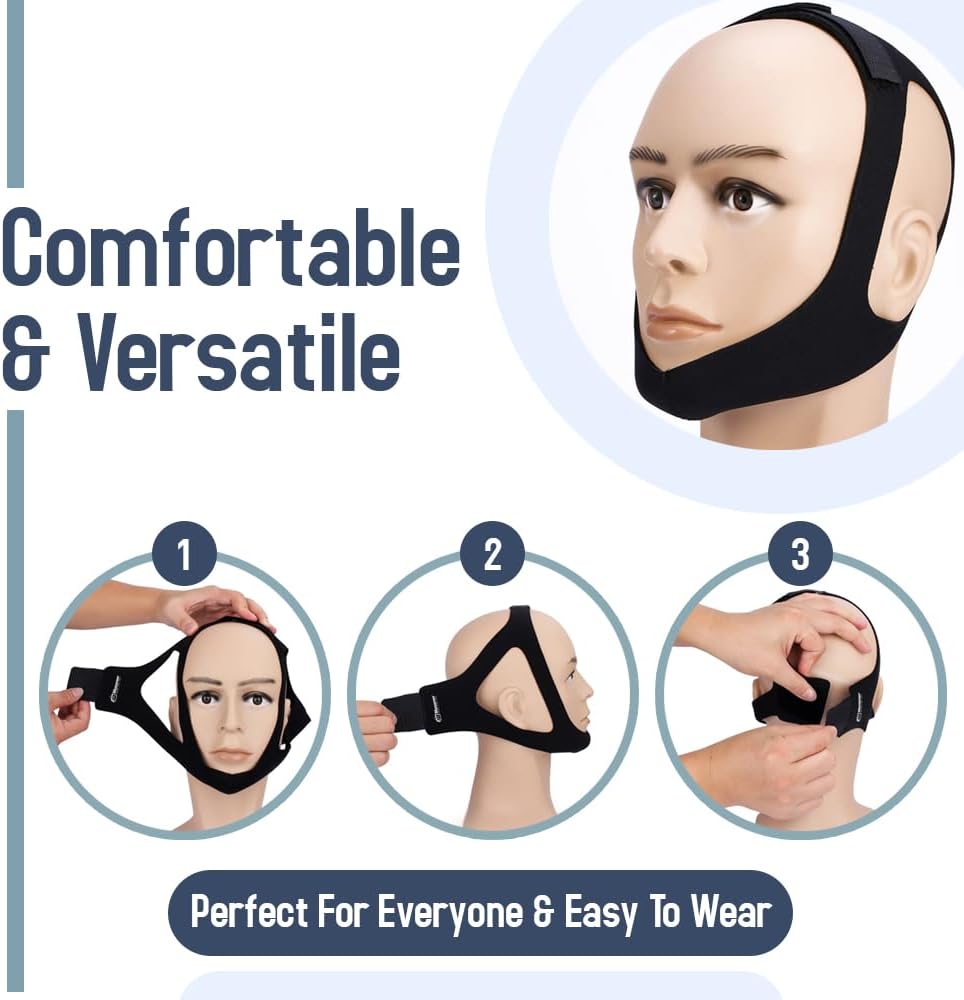 مرونة ثابتة: تم تصميم حزام الذقن الخاص بنا للحفاظ على مرونته، ويوفر دعمًا ثابتًا، مما يضمن بقاء فمك مغلقًا من أجل نوم متواصل - غسلة بعد غسلة.