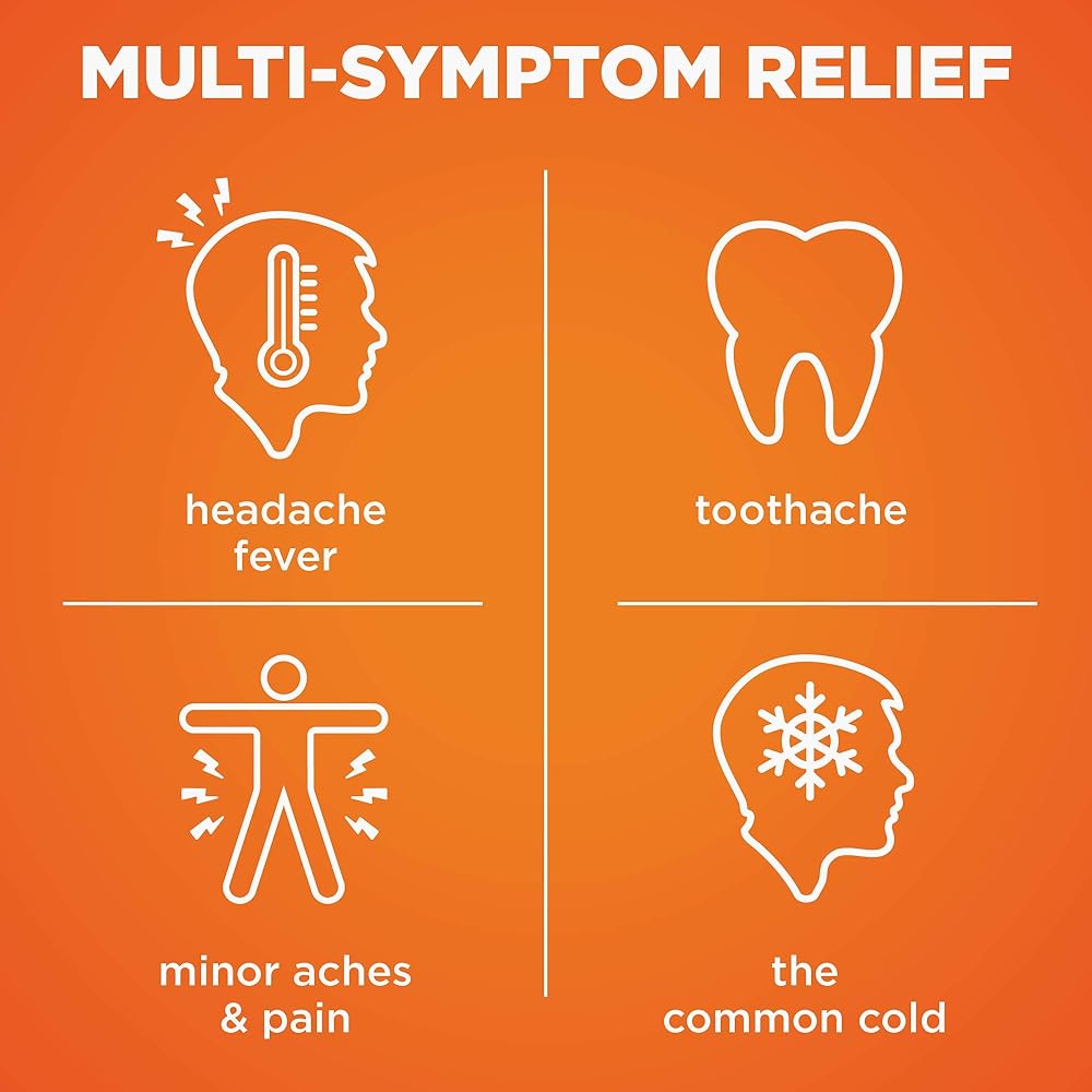 خالٍ من الصبغة: مسكن الألم السائل ومخفض الحمى بنكهة التوت، تم تركيبه للرضع من سن 6 أشهر إلى 23 شهرًا، وهو خالٍ من الصبغة وغير ملطخ. يتم تضمين جهاز الجرعات حقنة