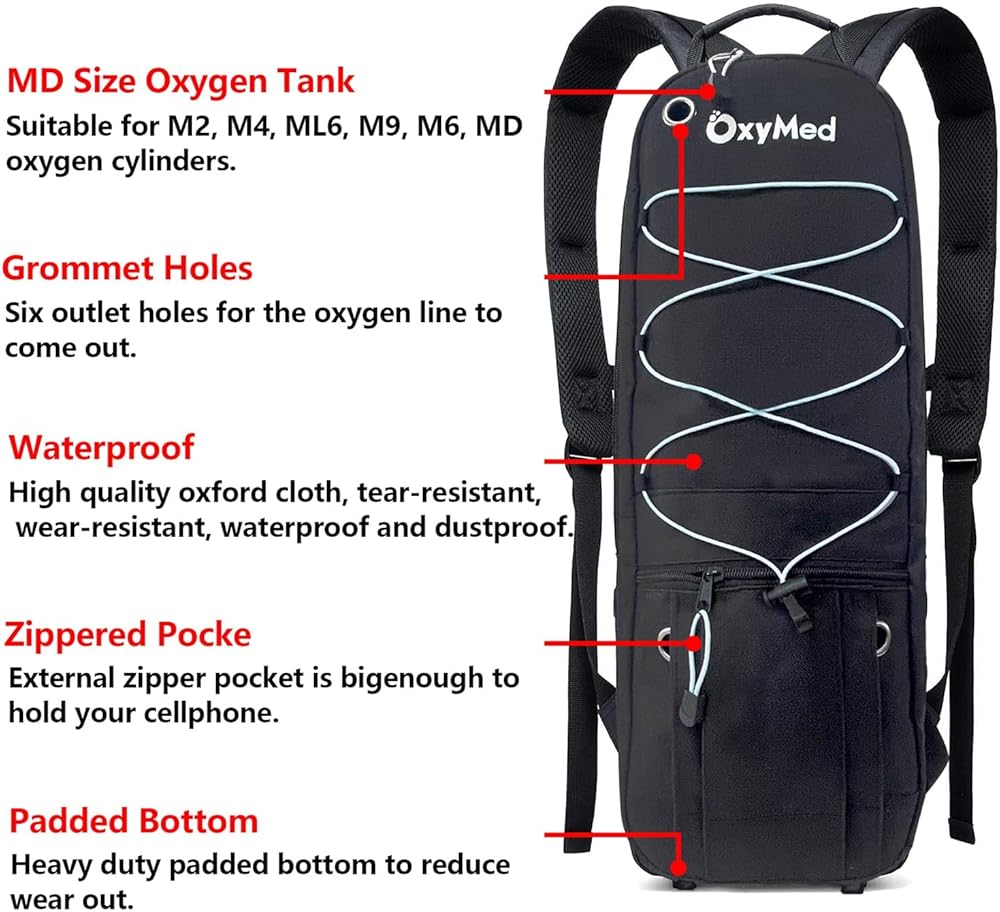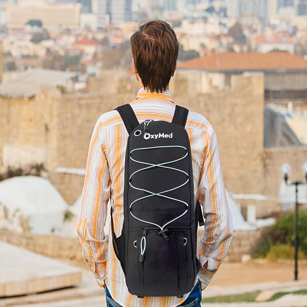 • أحزمة حقيبة الظهر قابلة للتعديل ومبطنة. يمكن ربط الأشرطة الممتدة حتى لا ترتخي الأشرطة، لذلك يمكن أن تكون حر اليدين تمامًا أثناء المشي اليومي أو السفر مع زجاجة الأكسجين.