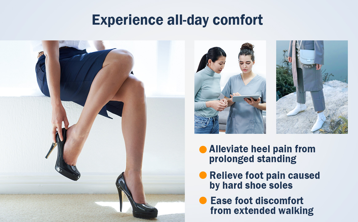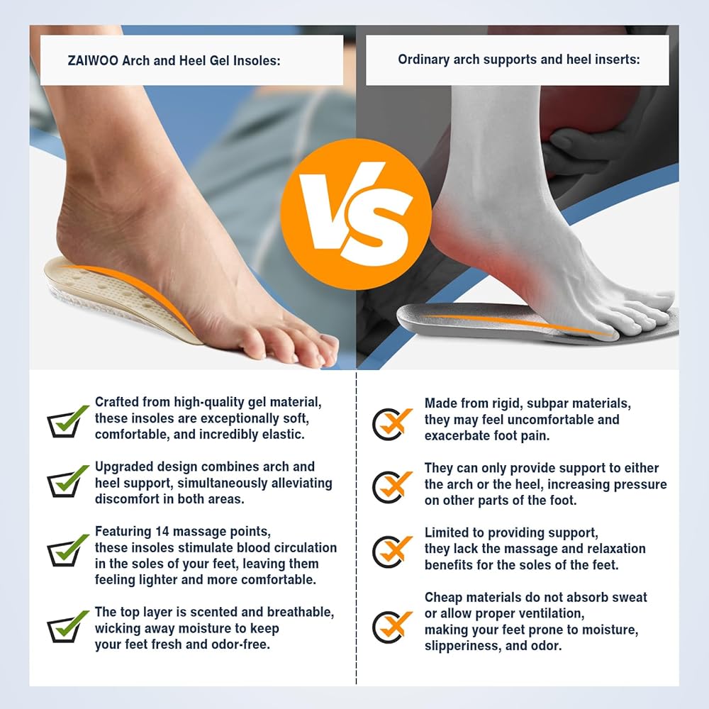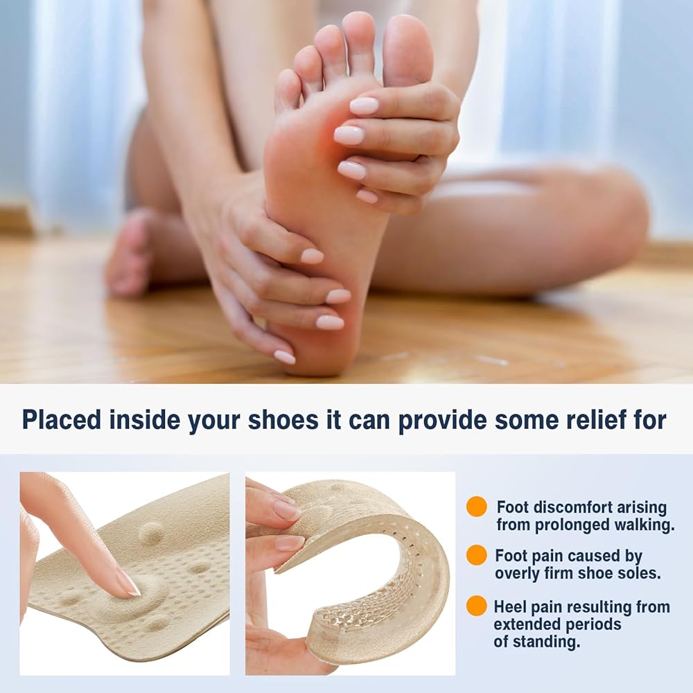 【راحة معززة لكلا القدمين】لا يوفر هذا المنتج الدعم لقوس قدميك فحسب، بل يضمن أيضًا أن يكون كعبك أكثر راحة. إنه يوزع الضغط على قدميك بشكل فعال، مما يوفر تخفيف آلام القدم الناجمة عن فترات طويلة من الوقوف أو المشي، بالإضافة إلى عوامل مثل السمنة.