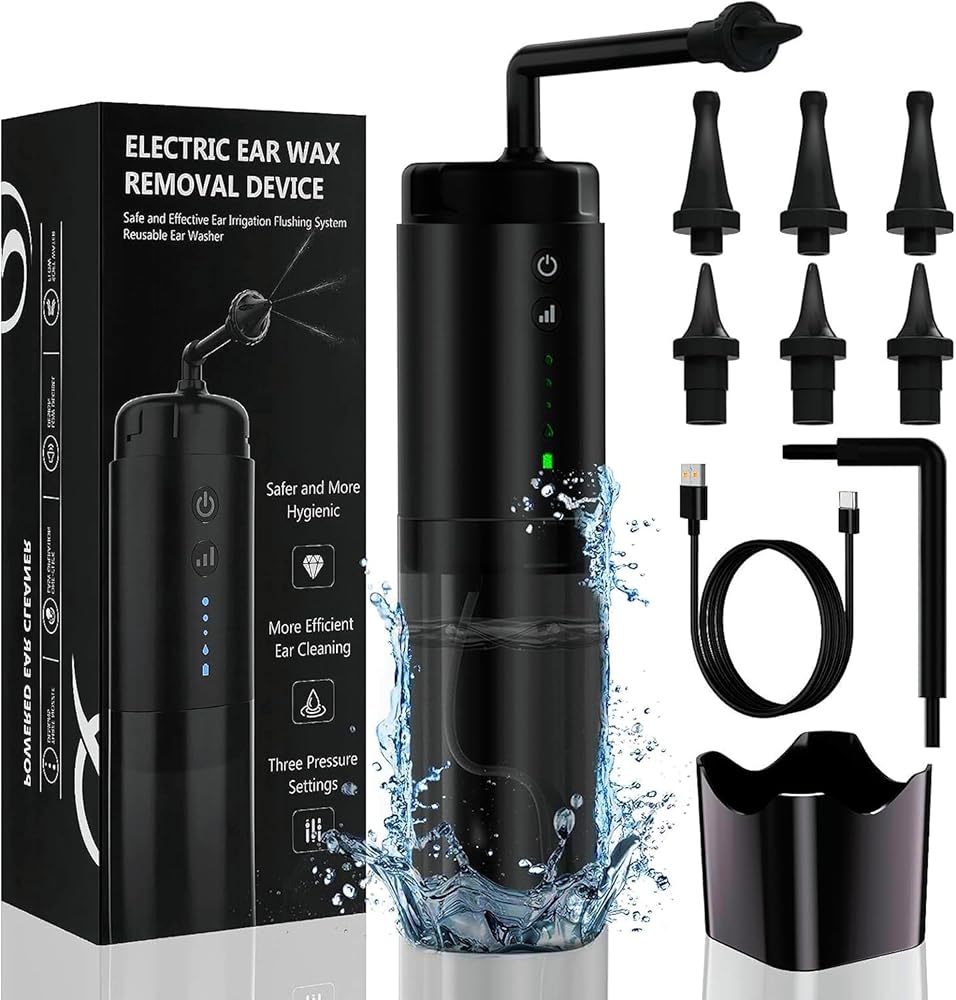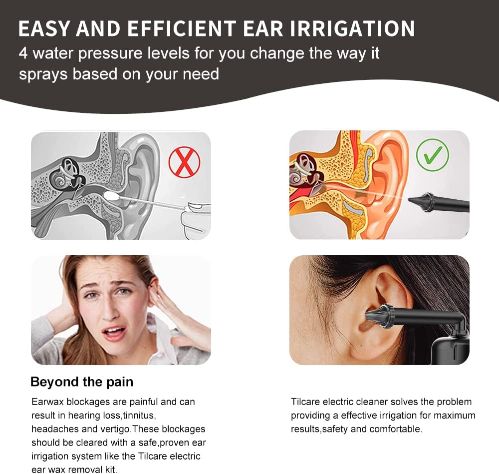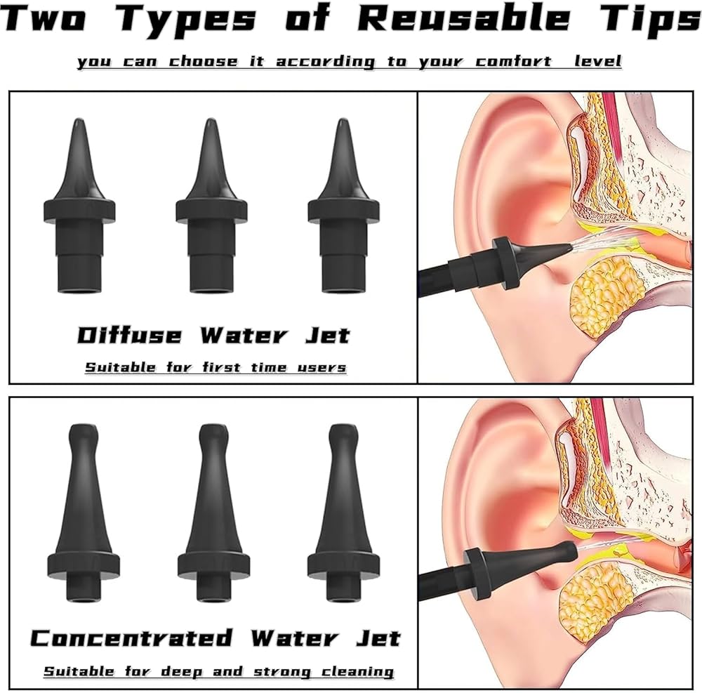 🔔【نصائح دافئة】: تأكد من استخدام منظف الأذن القابل لإعادة الشحن هذا بالماء الدافئ فقط، لأن درجة حرارة الغرفة والماء البارد يمكن أن تسبب الدوخة. وهذا يساعد على حماية قناة الأذن الحساسة من أي ضرر محتمل.