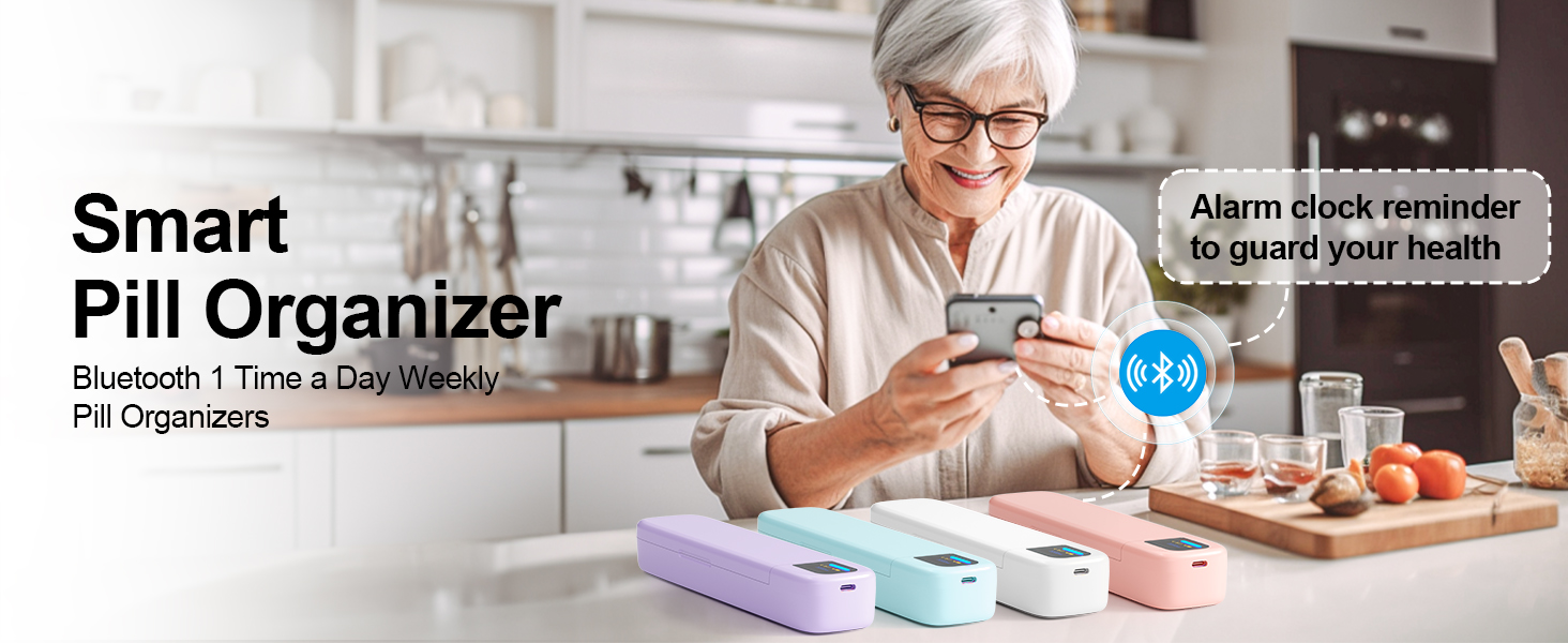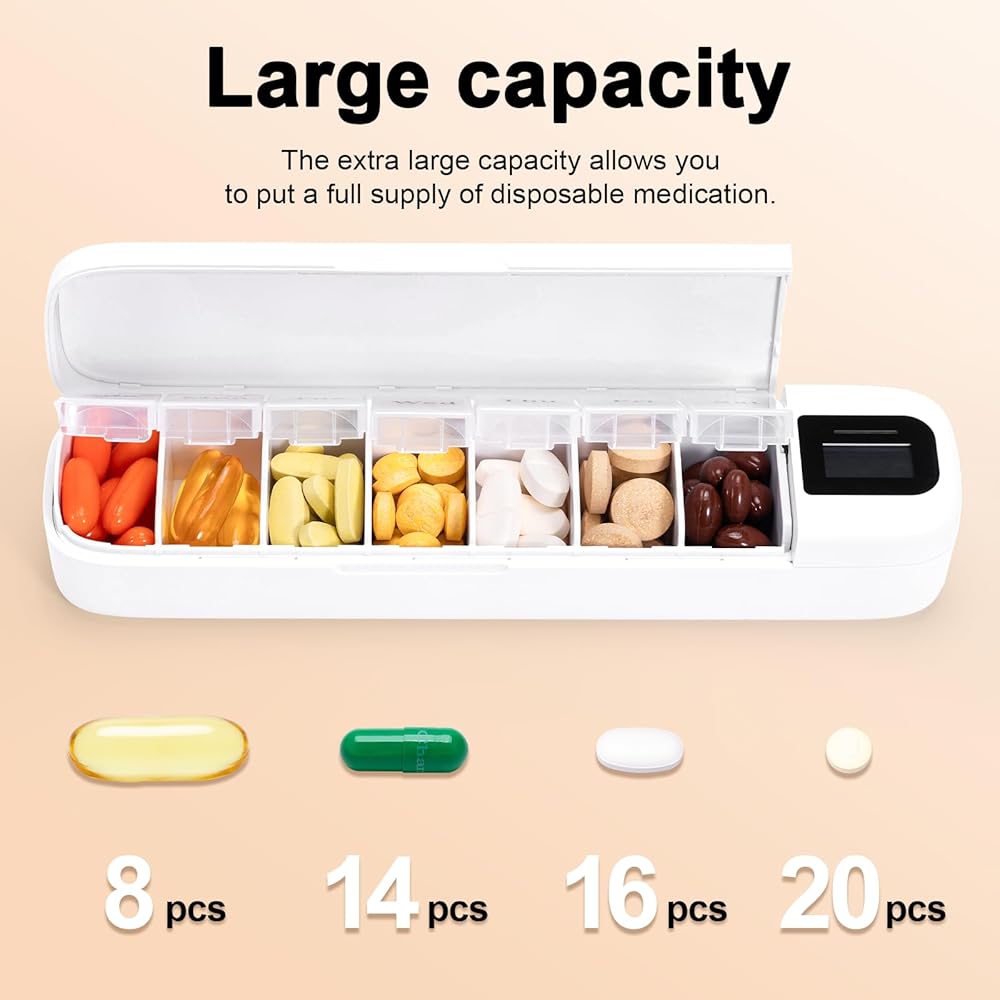 تطبيق تذكير الدواء - صندوق الأقراص الذكي هذا مع ما يصل إلى 7 منبهات، يصدر صندوق الأقراص الذكي هذا نغمة وامضة ويعرض رسالة على هاتفك لتذكيرك بنوع الدواء الذي يجب تناوله ووقته وكميته.
