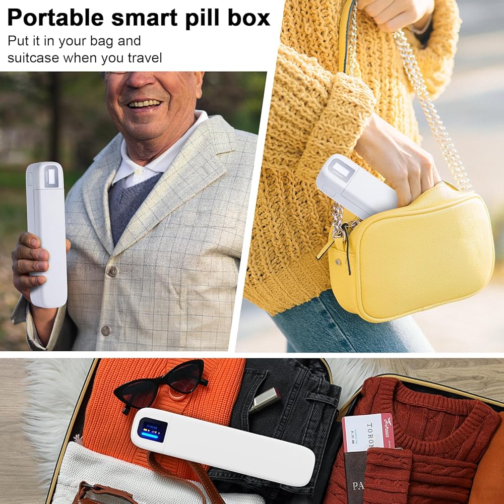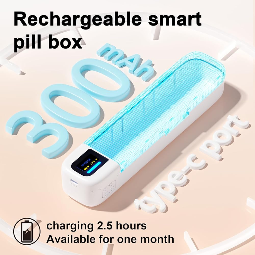 مدعوم ببطارية ليثيوم - موزع حبوب الدواء الذكي مدعوم ببطارية ليثيوم قابلة لإعادة الشحن، مع منفذ شحن من النوع C، يمكن استخدام صندوق حبوب الدواء لمدة شهر واحد بعد الشحن لمدة 2.5 ساعة.