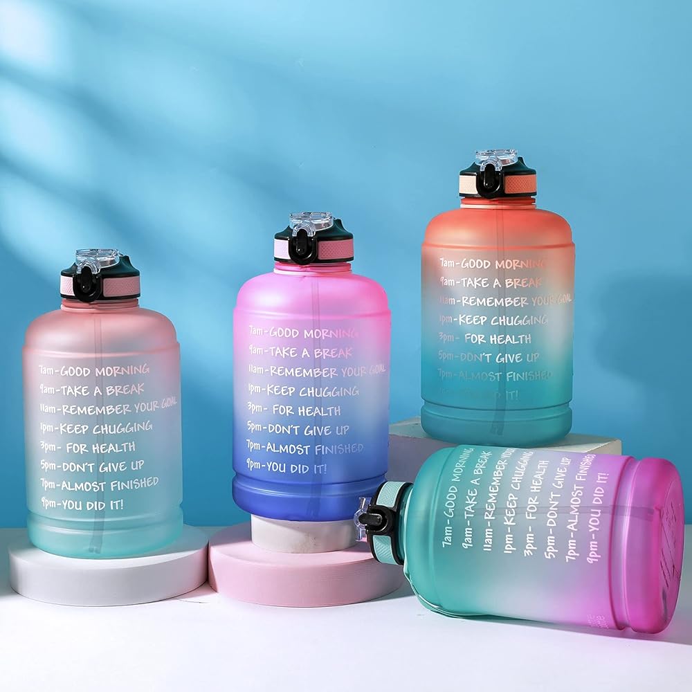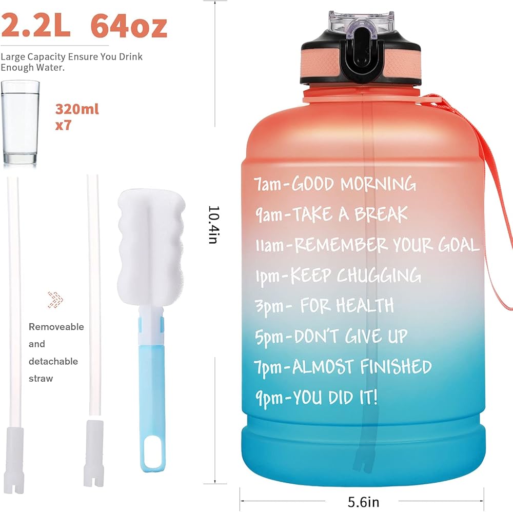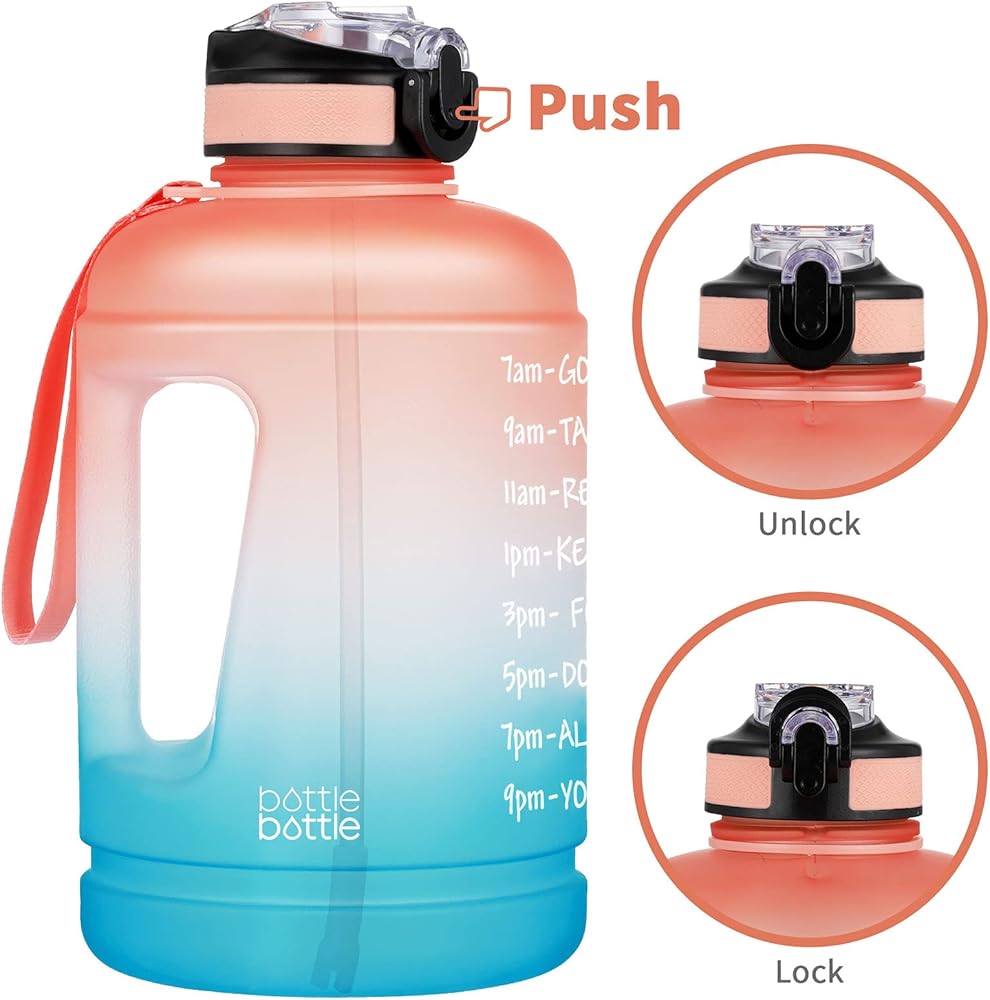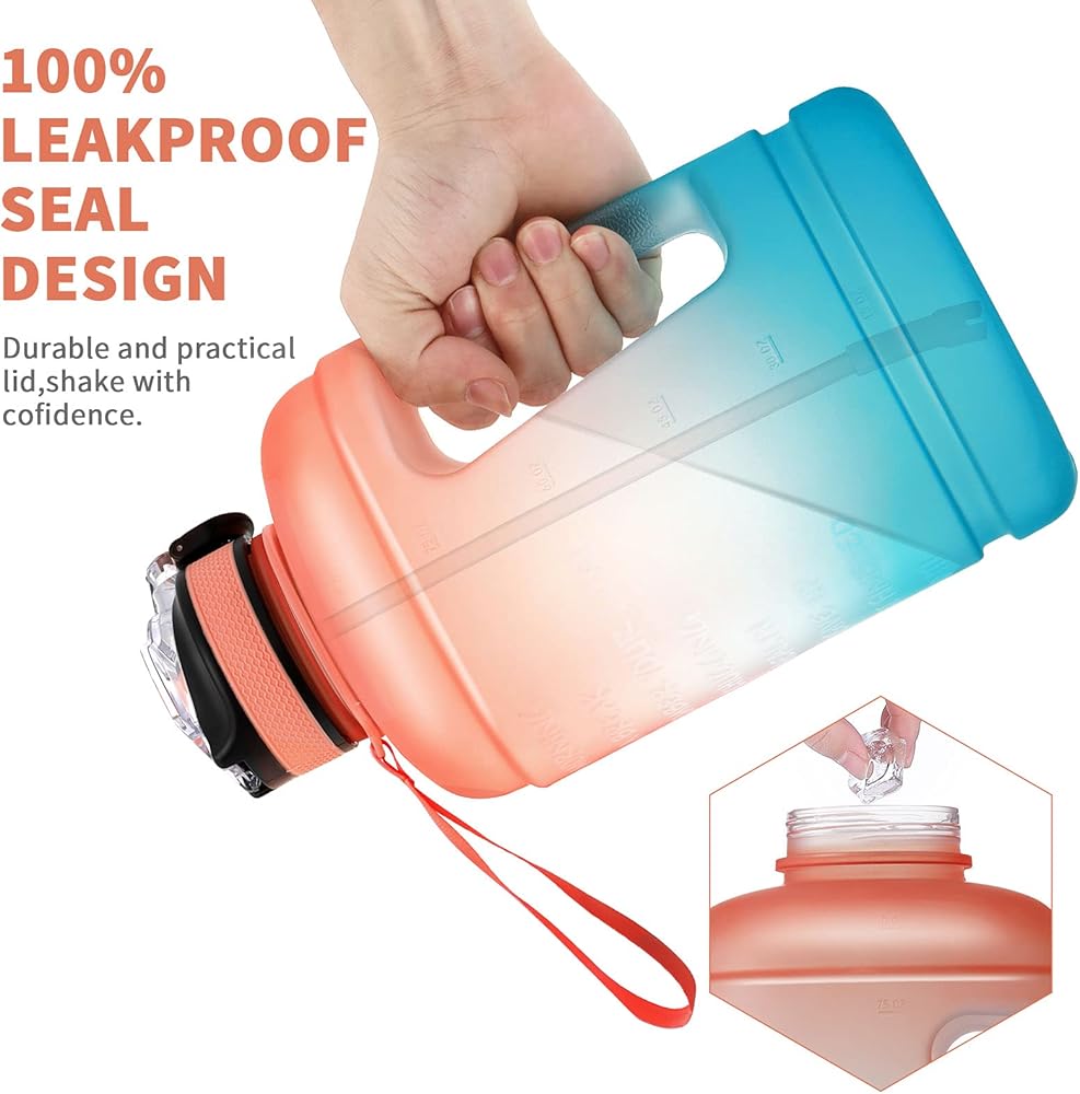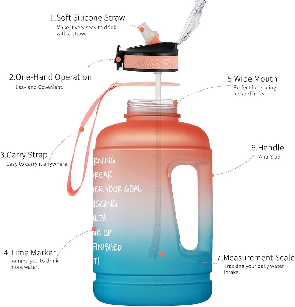 سعة نصف جالون كبيرة: تضمن لك زجاجة المياه الكبيرة نصف جالون تناول المياه اليومية بما يكفي دون الحاجة إلى إعادة ملئها بشكل متكرر. يتميز بميزان قياس يساعدك على التحقق من الكمية الفعلية من استيعاب الماء بسهولة وبوضوح، خيار جيد للأنشطة الخارجية والخارجية/الداخلية. زجاجة مياه سعة 1.7 لتر كبيرة جدًا لتختار منها