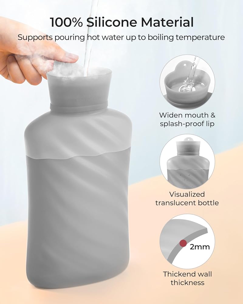 ❤️آمنة وآمنة للاستخدام: تتميز زجاجة الماء الساخن المصنوعة من السيليكون المطورة لعام 2023 بجسم سيليكون شفاف، وفتحة مدخل واسعة، وقاعدة مسطحة قائمة، مما يجعل من السهل صب الماء الساخن دون حرق يدك. تأتي مع غطاء خارجي رقيق يسهل ارتداؤه أو إزالته، زجاجة الماء الساخن هذه مع غطاء تحافظ على الدفء لمدة 3-4 ساعات في الداخل و6-8 ساعات تحت اللحاف.
