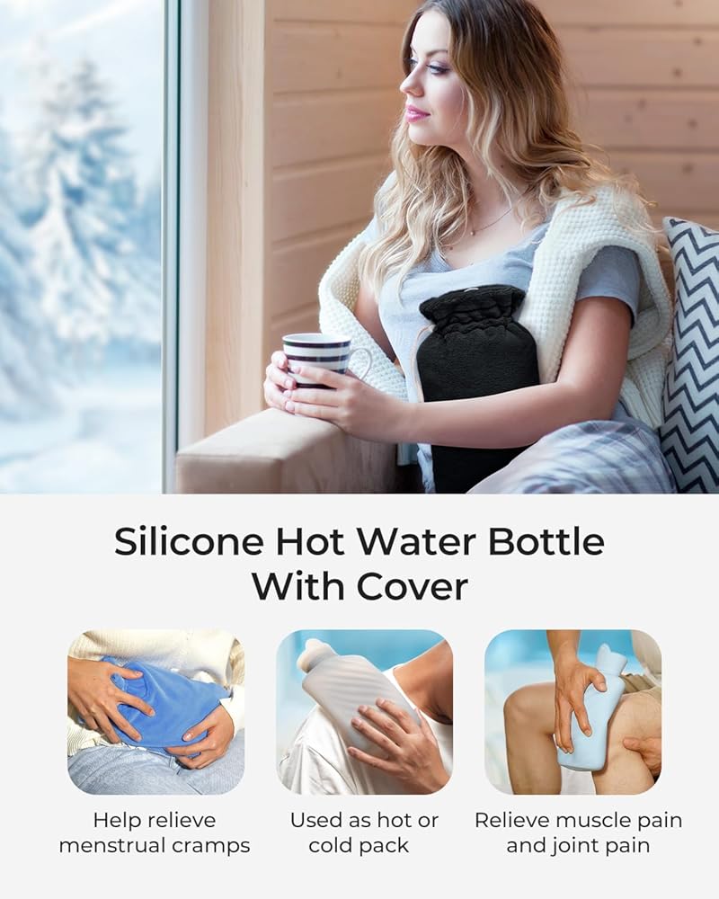 ❤️علاجات ساخنة وباردة مزدوجة الأغراض: زجاجات الماء الساخن لتخفيف الألم لا تدفئ جسمك في الشتاء البارد فحسب، بل تساعد أيضًا على تخفيف الآلام مثل تشنجات الحيض وآلام العضلات والإصابات الرياضية وما إلى ذلك. بعد التبريد في الثلاجة، يمكن أن تكون يستخدم ككمادات باردة لتقليل التورم. إنها هدية شتوية مدروسة/ هدية عيد الشكر، هدية عيد الميلاد/ هدية عيد رأس السنة الجديدة.