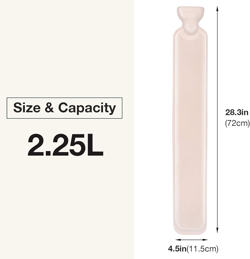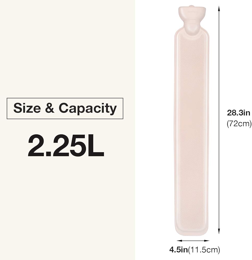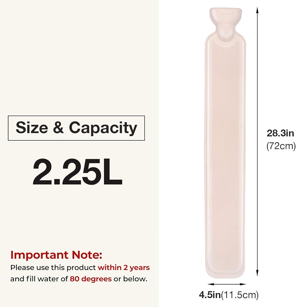 حجم المنتج: الطول 72 سم (28.35 بوصة) العرض 11.5 سم (4.53 بوصة) يوسع منفذ حقن الماء 2.8 سم (1.1 بوصة). تستخدم زجاجة الماء الساخن مواد عالية الجودة، نسخة سميكة من المطاط الطبيعي، مقاومة للحرارة للشيخوخة، عزل أكثر متانة وحماية للبيئة.