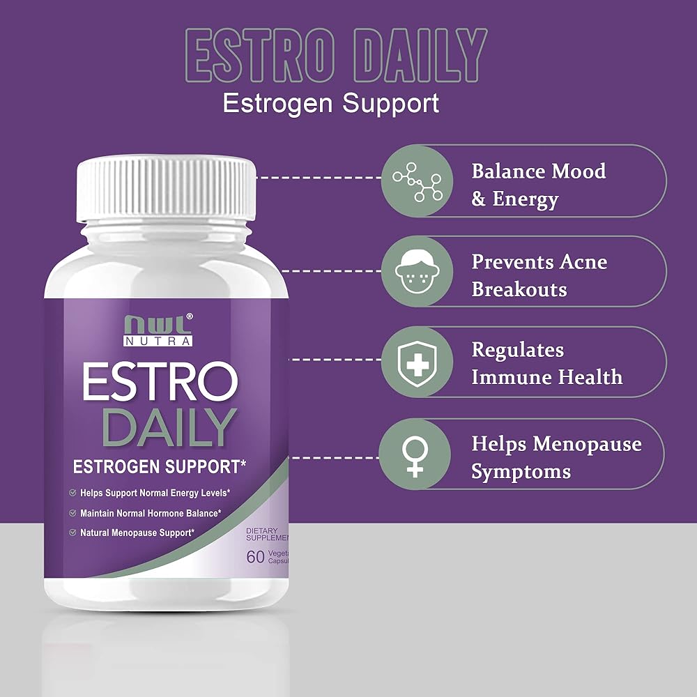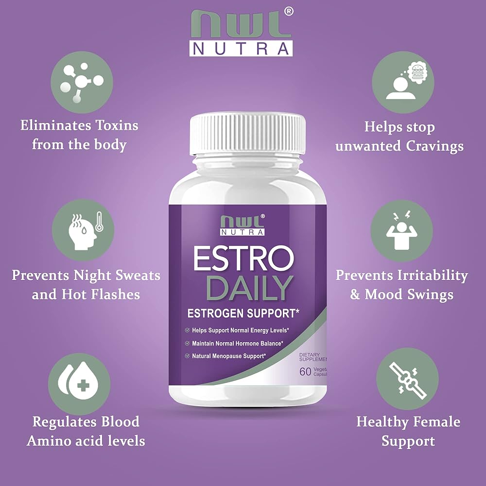 • كبسولات Nwlnutra ESTRO DAILY عبارة عن مزيج من الأعشاب الطبيعية والمكونات التي تدعم التوازن الهرموني، خاصة بالنسبة للنساء اللاتي يعانين من الرجال. أعراض انقطاع الطمث أو ما قبل الحيض.