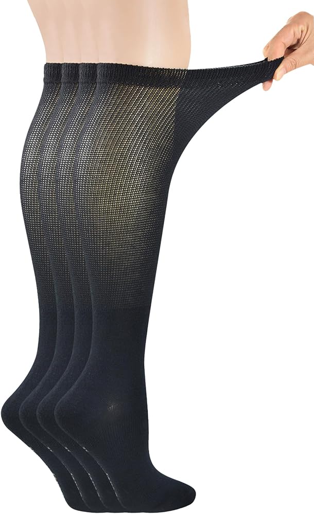 تأتي هذه الجوارب الضاغطة للنساء بطول يصل إلى ربلة الساق؛ 4 أزواج من الجوارب تحتوي على؛ مقاس الجورب: 9-11 (مناسب لمقاس الأحذية 6-10)