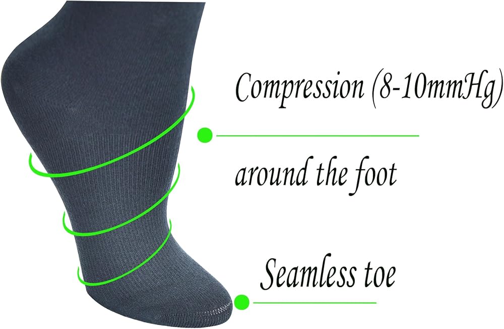 الدورة الدموية ودعم العضلات: جوارب ضغط طبية من الدرجة 8-10 مم زئبقي توفر دعمًا تدريجيًا للضغط من أجل ثبات العضلات، وهي مصممة للمساعدة في زيادة الدورة الدموية وتقليل الألم والتورم.