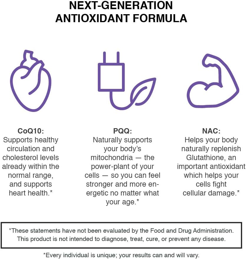 تحتوي التركيبة القوية المضادة للأكسدة المصممة خصيصًا على ثلاثة مكونات فقط مصممة لدعم وظيفة القلب الصحية والطاقة الخلوية.
