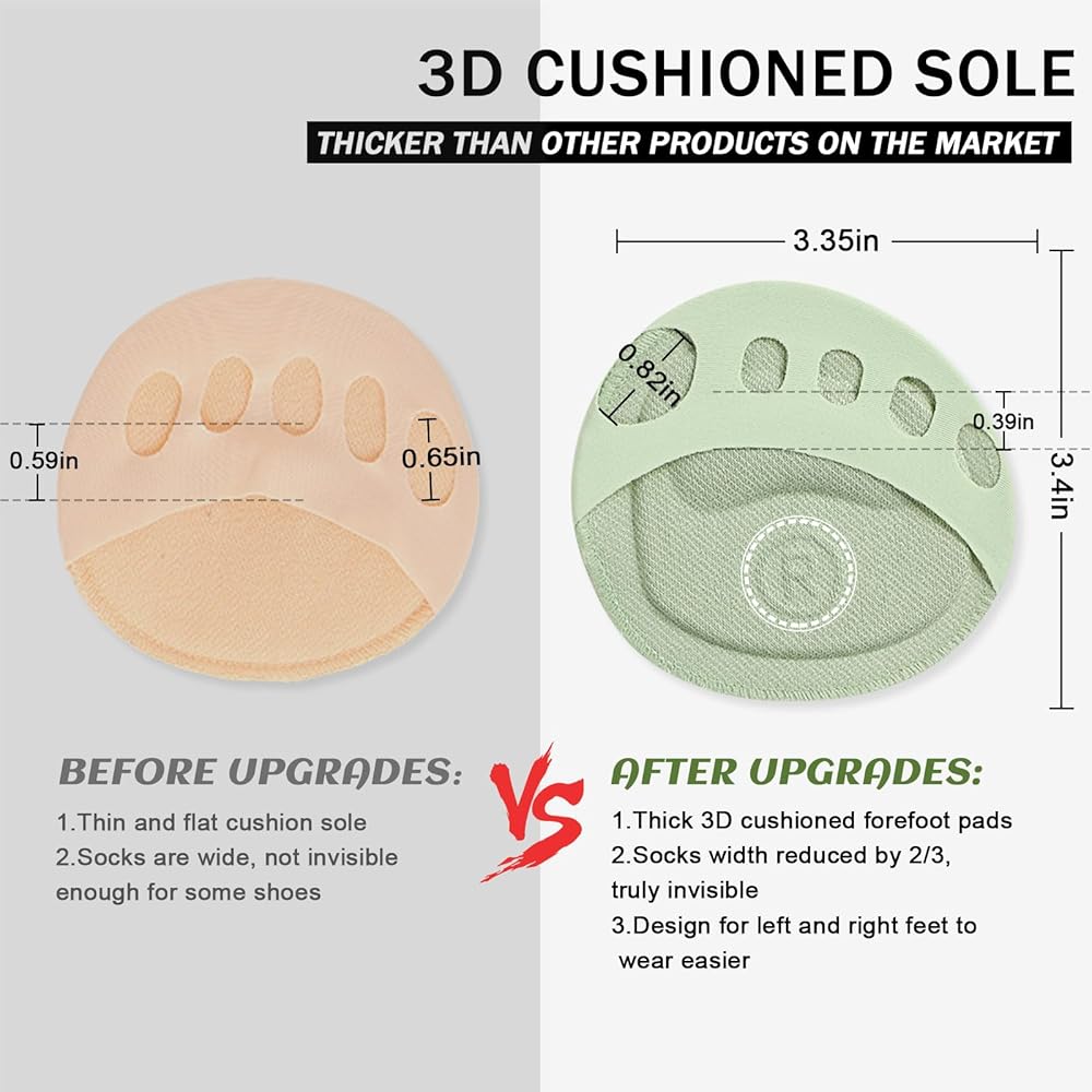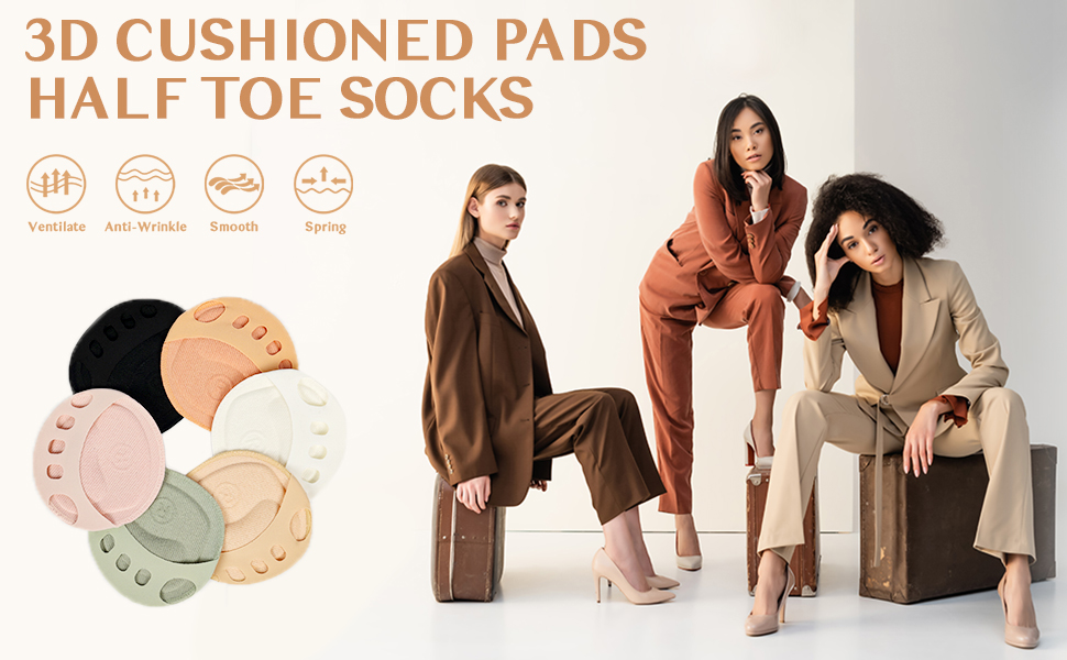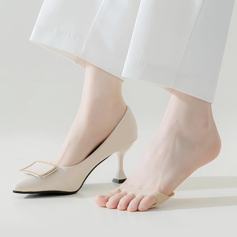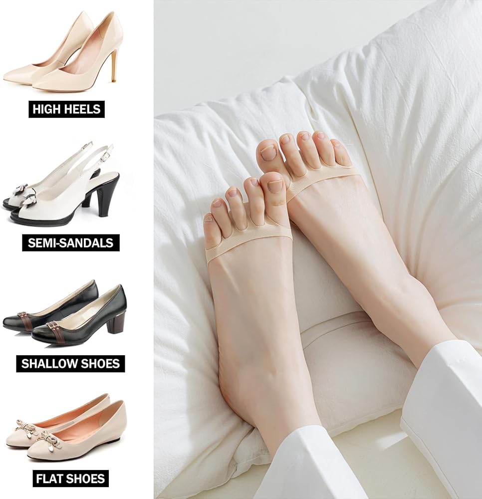 وسادات مشط القدم للنساء، جوارب علوية لأصابع القدم، وسائد لمقدمة القدم للكعب العالي مريحة بخمسة أصابع لمقدمة القدم، جوارب مبطنة بدون عرض، 5 أزواج متعددة الألوان
