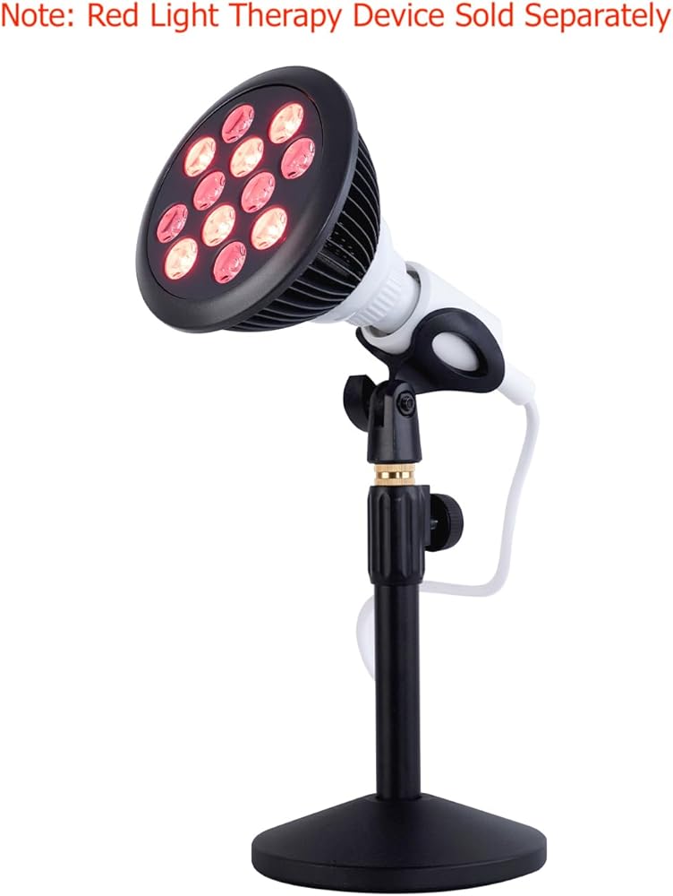 زاوية وارتفاع قابلان للتعديل: يتميز الحامل بقاعدة عريضة ومواد متينة بوزن جيد لدعم جهاز العلاج بالضوء الأحمر في أي زاوية. حامل العلاج بالضوء الأحمر المكتبي قابل للتعديل من 10.6 انش إلى 15.4 انش. يحافظ ضبط مقبض المسمار على ضبط الارتفاع من الانزلاق.