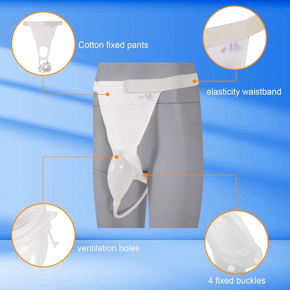 مبولة يمكن ارتداؤها للرجال، ملخصات سلس البول للبالغين، حقيبة التحكم في سلس البول، قسطرة خارجية للرجال، كيس بول سيليكون قابل لإعادة الاستخدام، أكياس قسطرة البول مع قسطرة البول
