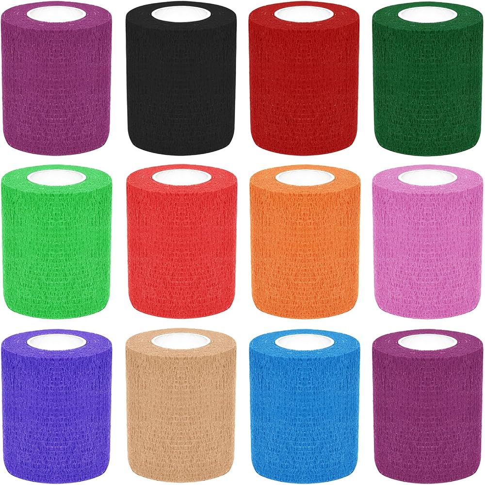 كمية المقاس: 12 لفة من الشريط الرياضي القابل للتمدد، الطول 5 ياردة، العرض 2 انش.