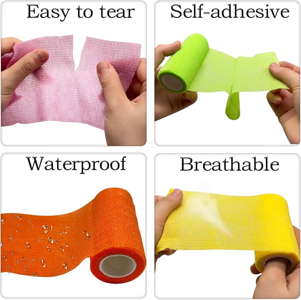 الأشرطة الخاصة بنا لاصقة، مثل الكاحل والمعصم والأصبع، يمكن تمزيق القماش بسهولة باليد، الضمادة مصنوعة من قماش مسامي عالي الجودة ومواد غير منسوجة، ويمكن أن توفر تهوية جيدة، تسمح المادة المرنة المتينة بوضع الضمادات على أي جزء تقريبًا بسرعة وسهولة.