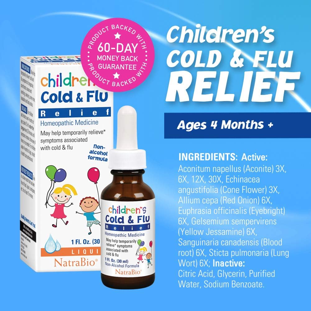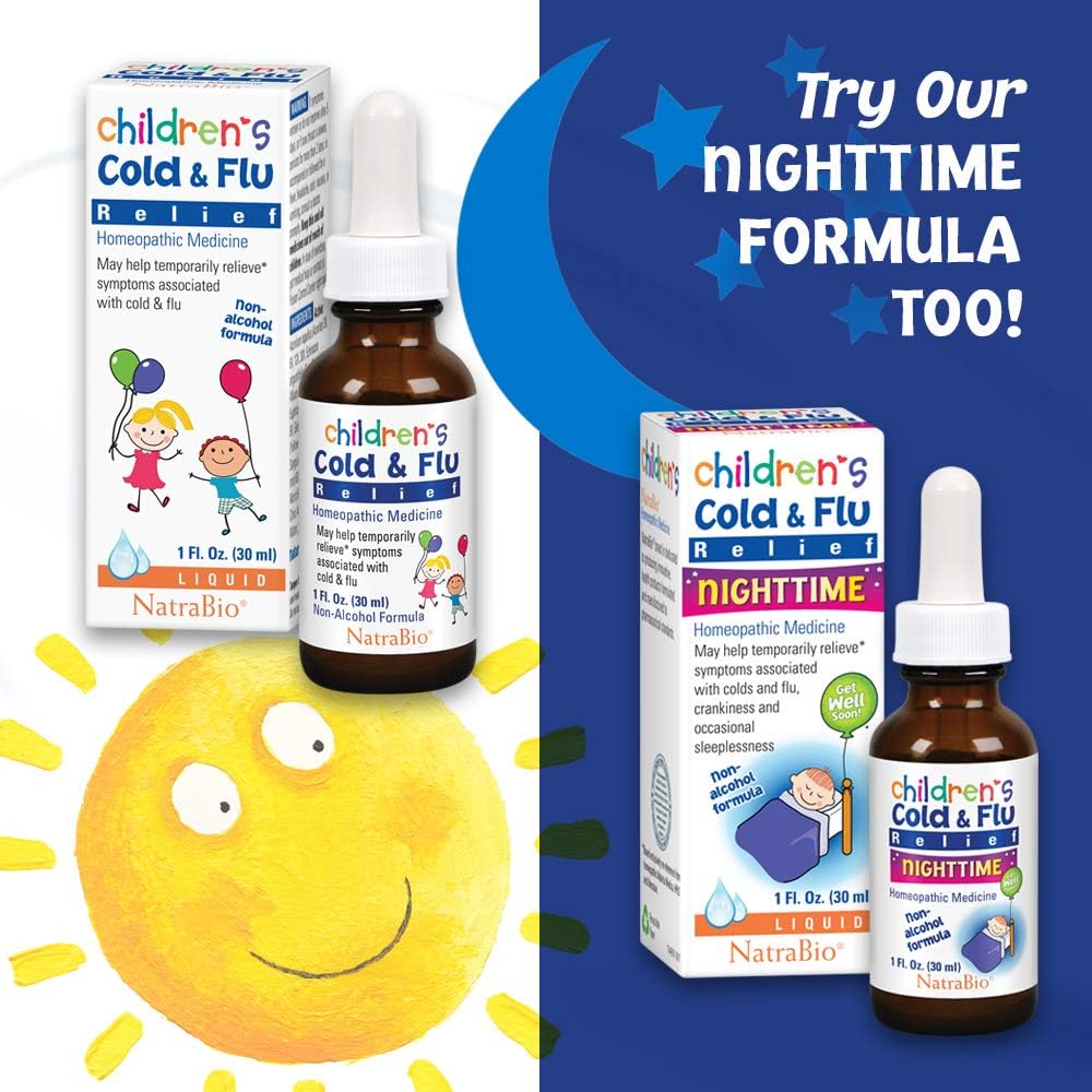 الطب المثلي لتخفيف نزلات البرد والأنفلونزا من NatraBio | الأطفال والرضع 4 أشهر فما فوق | احتقان، التهاب الحلق، غثيان، عطس، أوجاع | بدون سكر، بدون آثار جانبية ولا يسبب النعاس | 1 أونصة سائلة