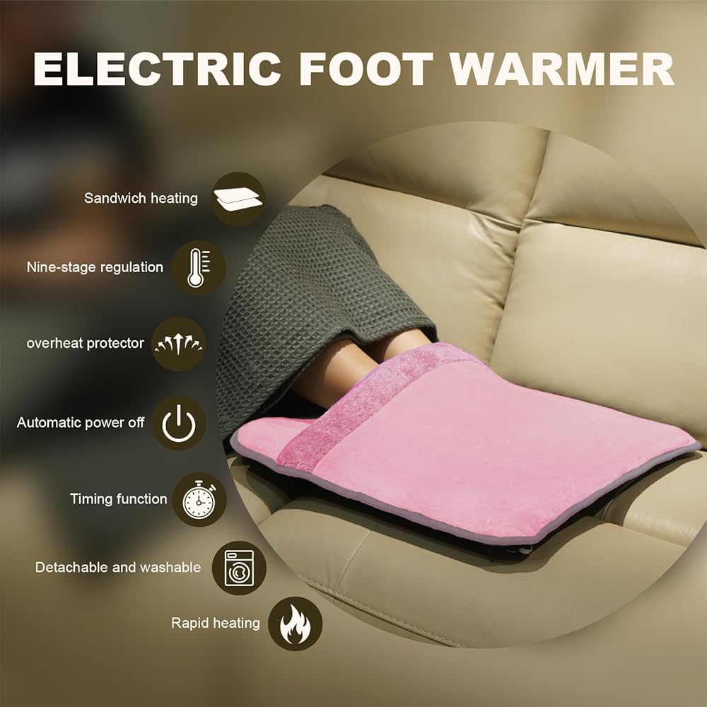 السلامة الأولى: لقد صممنا جهاز تدفئة القدم هذا مع وضع سلامتك في الاعتبار. يتميز بآلية إيقاف تلقائي لمدة ساعتين لمنع ارتفاع درجة الحرارة، مما يمنحك راحة البال أثناء الاسترخاء.