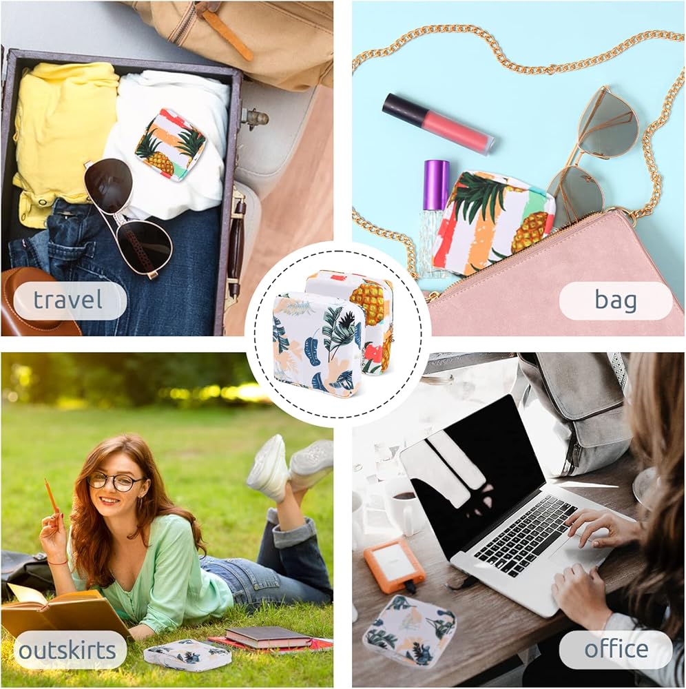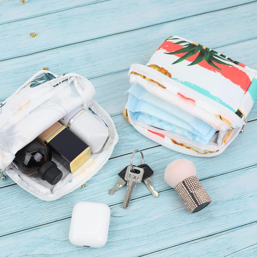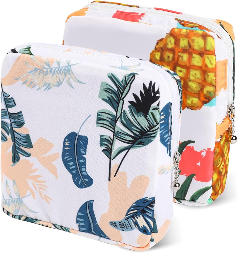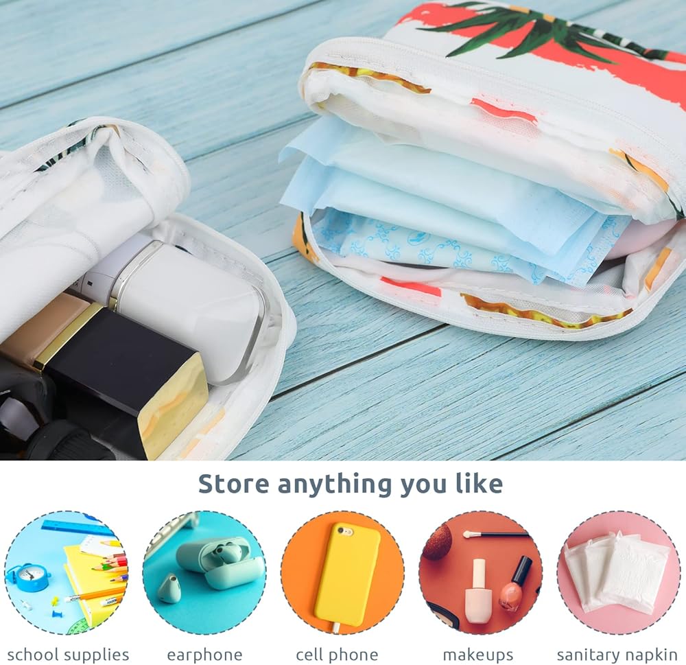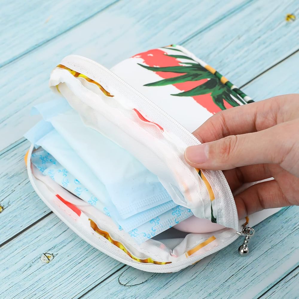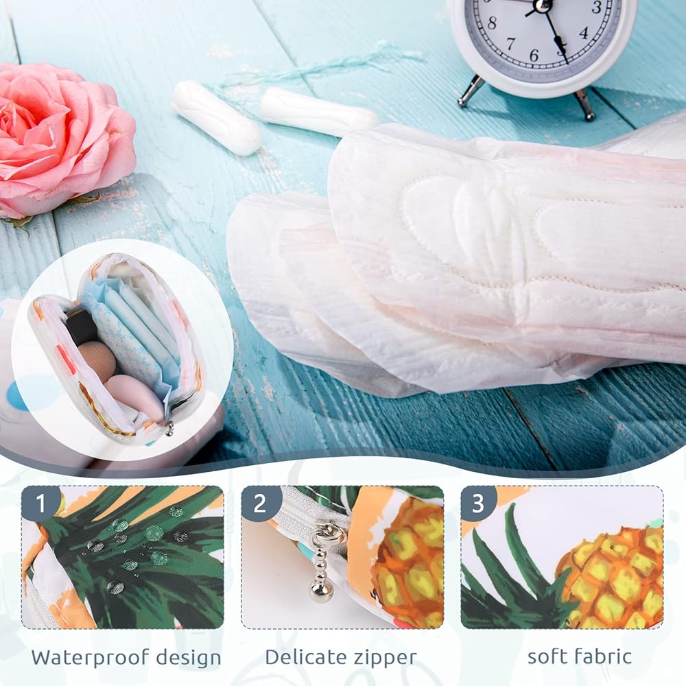 【مادة فاخرة وتصميم أنيق】حقيبة الدورة الشهرية للفتيات مصنوعة من مادة قطنية ناعمة ولطيفة على البشرة، مع تصميم سحاب ناعم. زيّن الحقيبة بالأناناس والزهور، كل سطح له ألوان زاهية، أنماط مجموعة الدورة الشهرية هذه متداخلة بين النساء.
