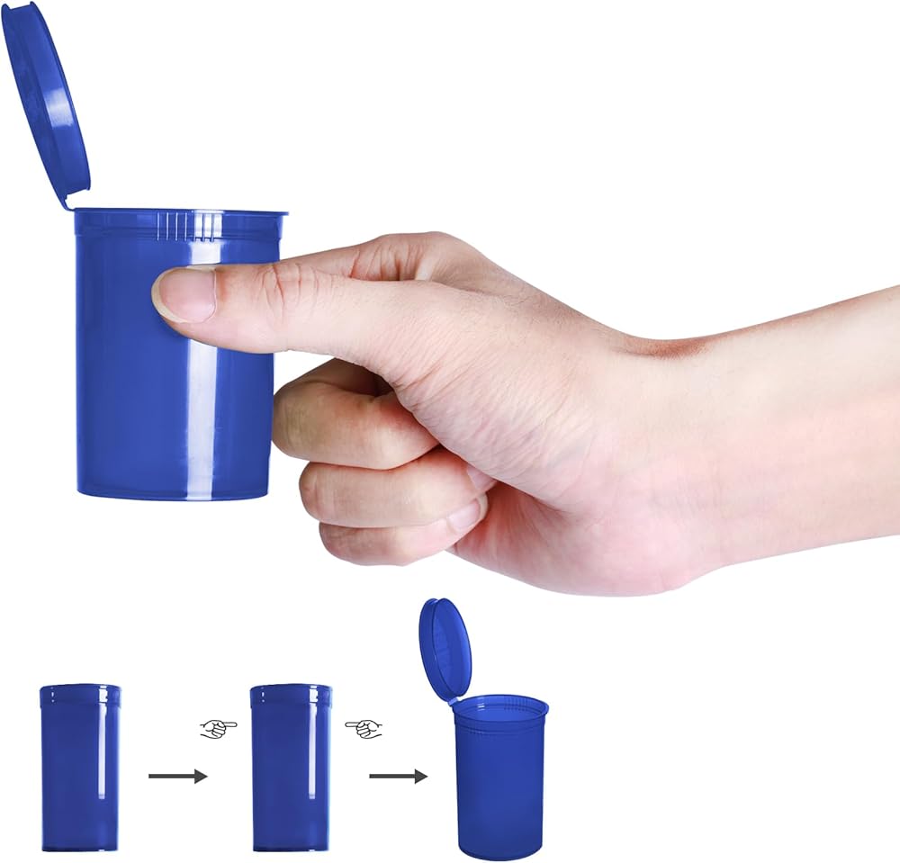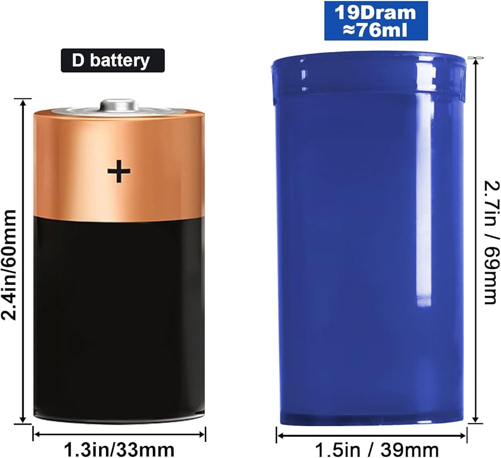 الحجم المثالي: يبلغ مقاس كل زجاجة من زجاجات حبوب الدواء ذات الأغطية حوالي 1.3 × 2.7 بوصة، ويمكنها حمل ما يصل إلى 13 درامًا أو 1.6 أونصة.
