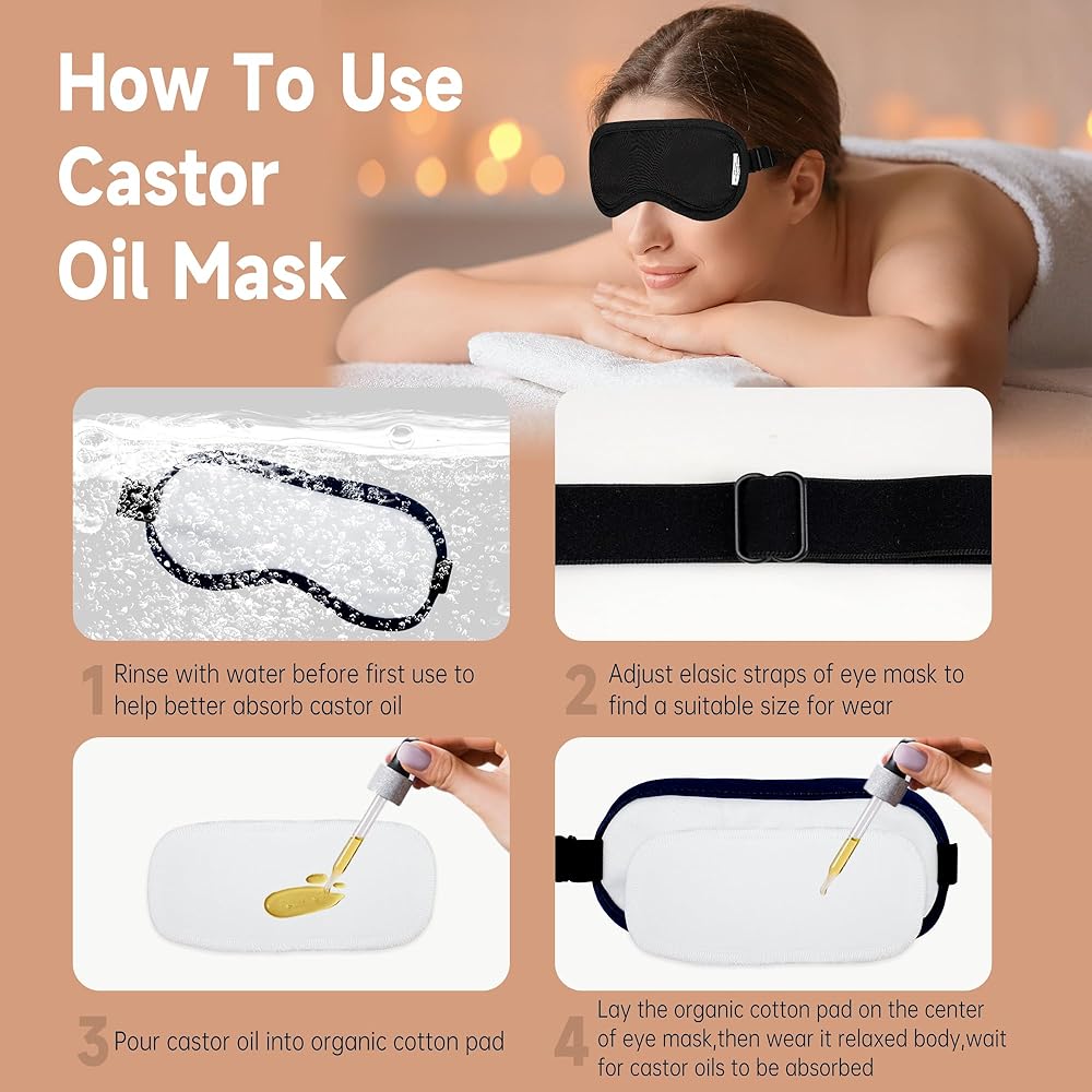 • 【صديقة للبيئة وآمنة】 عبوة زيت الخروع الخاصة بنا مصنوعة من نسيج عضوي غير مبيض وصديق للبيئة بدون أي مواد كيميائية. إنه ناعم ولا يسبب الحساسية، مما يجعله مناسبًا لجميع أنواع البشرة، ويمكن حتى ارتداؤه طوال الليل، وهو ناعم ولا يسبب الحساسية، ويساعد على امتصاص كل الزيوت لتحسين معدل الاستخدام. يمكنك أيضًا استخدامه كقناع نوم عادي حجب الضوء وتساعدك على النوم بسرعة.