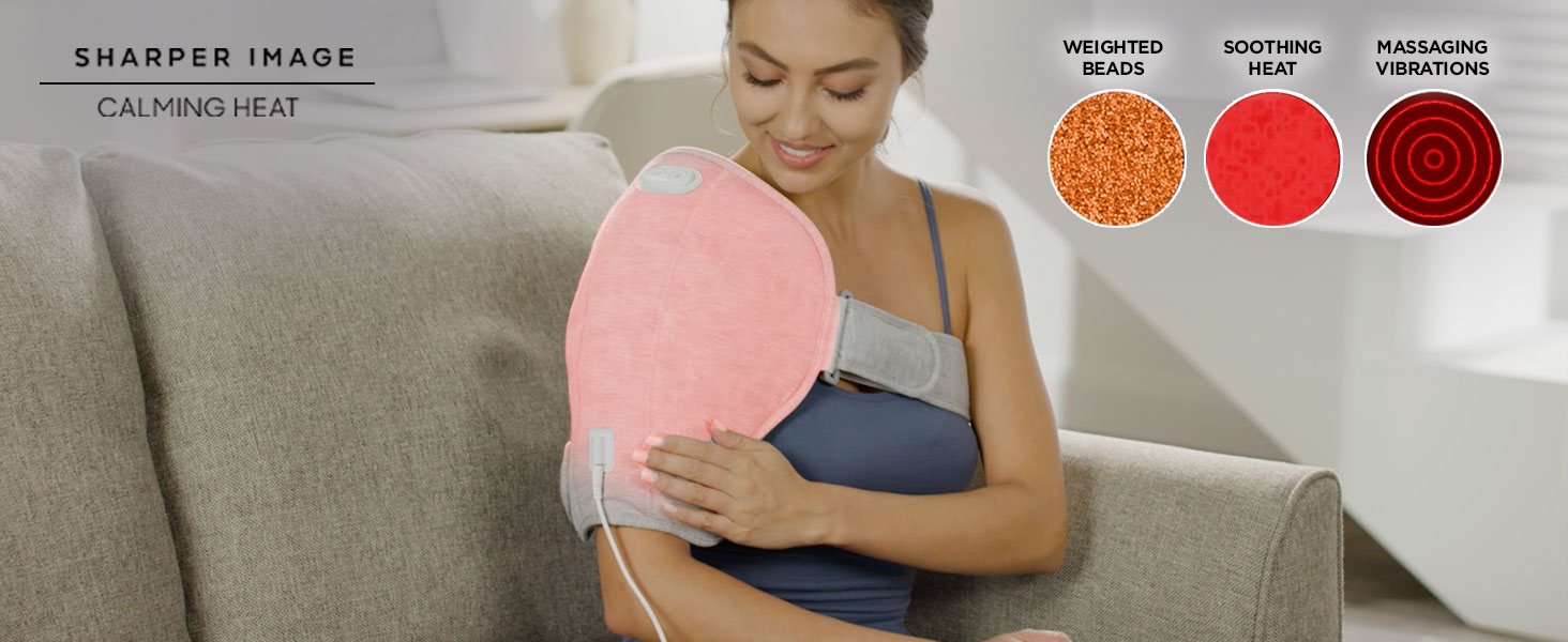 لف كتف حراري مهدئ من Sharper Image - وسادة تسخين كهربائية للكتف مع اهتزازات وحرارة مهدئة، دعامة كتف يسار أو يمين، 3 حرارة، 3 إعدادات اهتزاز - 9 مجموعات مريحة
