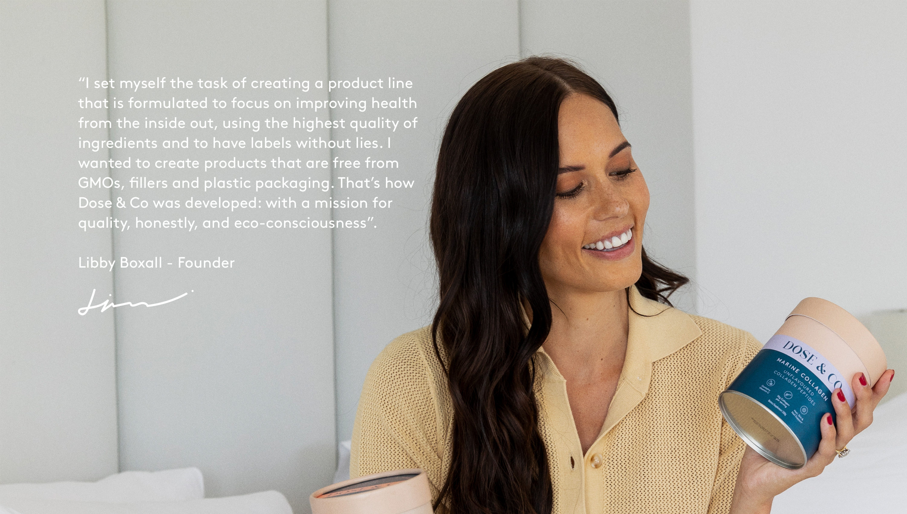 DOSE AND CO: We're believers in nourishing the body from the inside out, with effortless, everyday self care. That's the Dose & Co difference. A range of premium collagen products designed to fit seamlessly into your daily routine - wherever your day might take you.