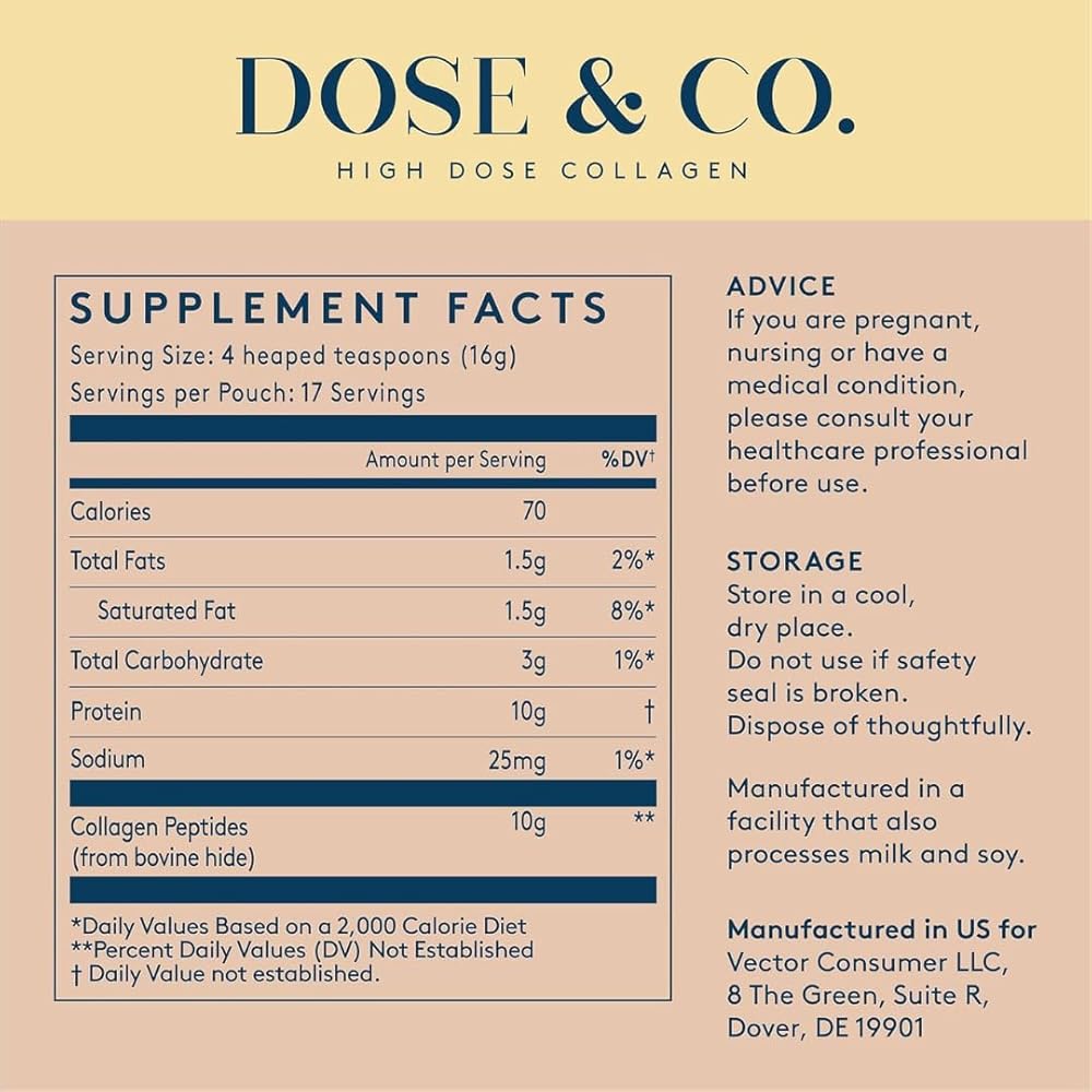 DOSE & CO. كريم الببتيد بالكولاجين، الفانيليا الخالية من منتجات الألبان، 9.6 أونصة، يدعم صحة الشعر والبشرة والأظافر، يمتزج بسهولة، النوع الأول والثالث من الكولاجين البقري للنساء والرجال، غير معدل وراثيًا، مواد حافظة وخالية من الغلوتين