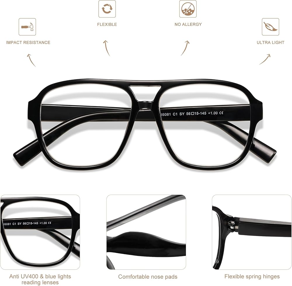 عدسات حجب الضوء الأزرق: عدسات قراءة عالية الجودة مضادة للضوء الأزرق، طبقة مزدوجة مضادة للأشعة الزرقاء لمزيد من الحماية، ترشح 99% من الأشعة فوق البنفسجية الضارة لتخفيف الوهج وإجهاد العين الرقمي.