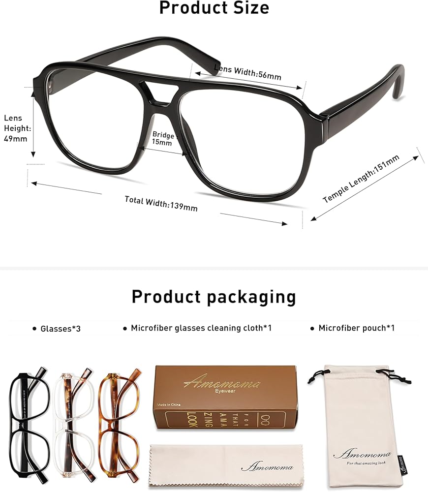 العبوة - نظارات قراءة زرقاء تحجب الضوء*3، قطعة قماش لتنظيف النظارات من الألياف الدقيقة*1، حقيبة جلدية*1، صندوق مصمم بشكل جميل*1