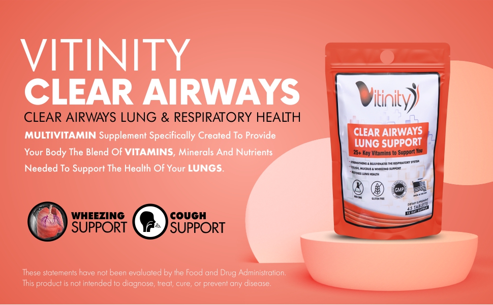 دعم الفيتامينات - مع الجرعات المناسبة من الفيتامينات والمعادن الرئيسية، قد تساعد Clear Airways في دعم الجسم بالكامل للحصول على صحة مثالية. إن شفاء الرئتين هو مجرد بداية، ولكن الأمر يتطلب صحة الجسم بالكامل والعافية العامة للحفاظ على أداء أفضل ما لديك طوال الوقت!